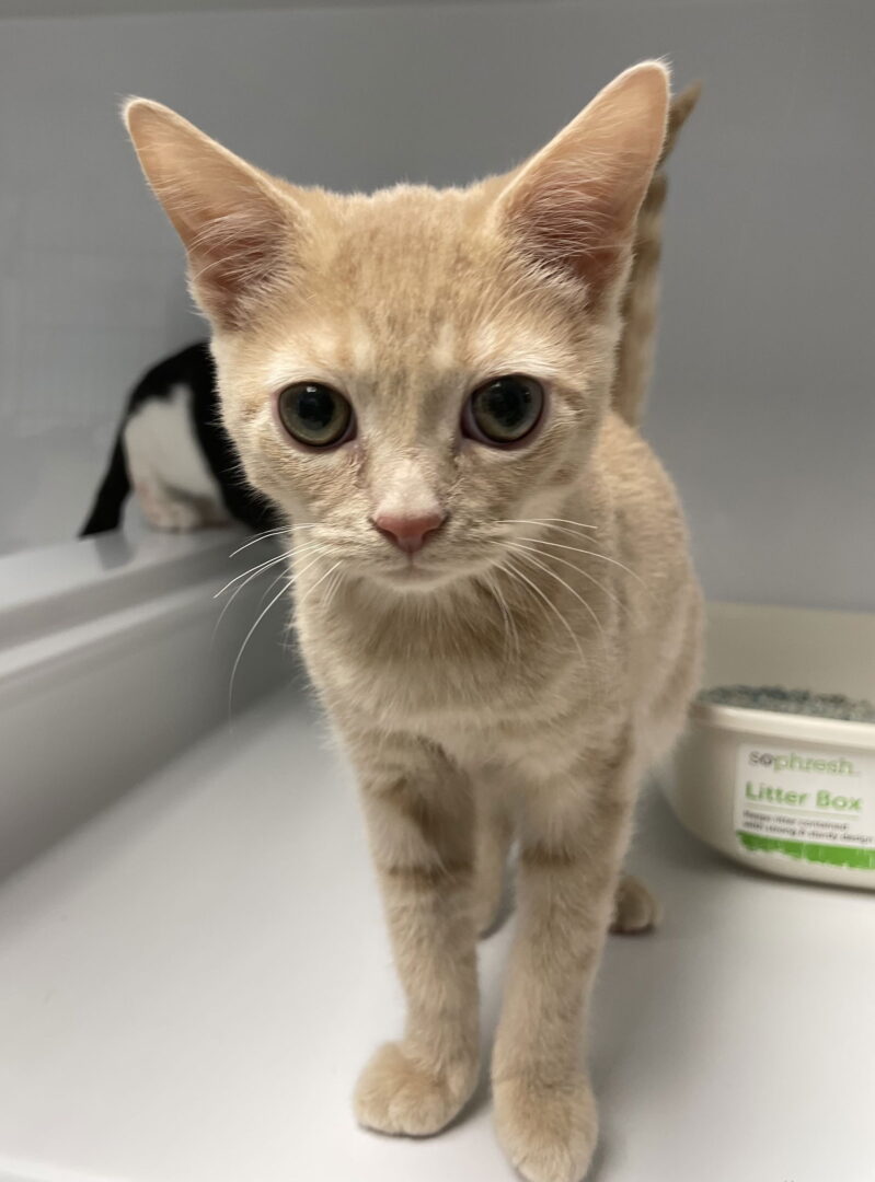 2/8/2025 came to Angel PAWS from Michelle at starfish. Initially there were three bottle babies, Piggy is the only surviving sibling. He was raised with Charlie and Chaplin.
