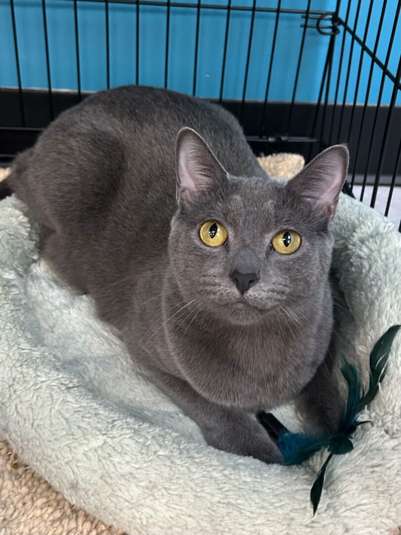 See Pixie’s HomepageGo to our official websiteYou can fill out an adoption application online on our official website.Pixie is so adorable and it’s hard to not admire her beautiful pewter colored coat reminiscent of the color of Russian Blue cats. She is a quiet girl, but is still mischievous and bouncy. She enjoys playing with Buzz so she hopes to be adopted with him or into a home with another young friendly cat that would like a kitty companion. She would be a great companion to someone who is looking for a gentle, sensitive soul. Pixie is UTD on vaccines, has been dewormed, microchipped and is already spayed. She has also tested Felv/FIV/HW negative. An adopter with previous annual veterinary history it strongly preferred.