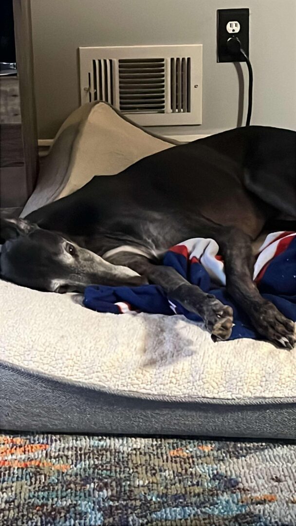 See PJ’s HomepageGo to our official websiteYou can fill out an adoption application online on our official website.PJ whose racing name was Pat C Establish was in a very loving home since 2018, however his adopter has fallen on hard times and can no longer keep PJ or the other greyhound, Hondo. PJ is such a sweet, sweet boy at 11 years old. He has a repaired broken leg sustained during a dog attack. Both PJ and Hondo have been evaluated at NorthStar and are in good health. Pictures 2 – 5 are from 2018. ________________________________________________________ ORIGINAL POSTING from 2018 Pat C Establish if a another very handsome boy. He is happy and friendly. He is a distinguished and dapper gentleman with a salt and pepper face. The volunteers described his as "just a nice boy". I would say that he is another one of our "mooshie" boys who is a leaner and loves attention and affection. He settles into a nice walk and then trots nicely beside the person holding his leash. Establish is 4 years old and although he loves people, no cats, please. The folks in Florida also told us that he is good with kids as some of the kennel folks had their kids around him.