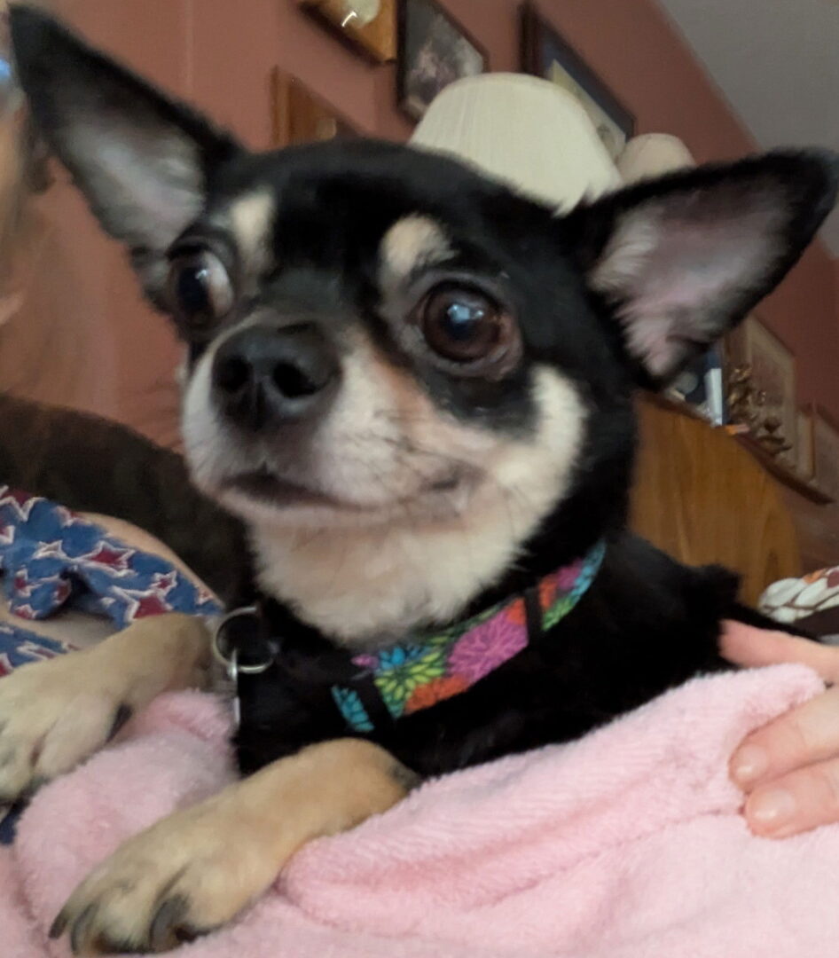 See PJ *FH’s HomepageGo to our official websiteYou can fill out an adoption application online on our official website. PJ came to PRBJ when his family had to move and they were unable to take him. He is a shy dog that takes some time to warm up to new people. He is not used to being on a leash and is pee pad trained. We are working to get him potty trained outside. Going out with another dog is a big help for him as he tends to imitate. Due to his nervous behavior, we are recommending an adult only home with someone who is patient and willing to give PJ the time he needs to come out of his little shell. Foster update: It takes PJ a while to warm up. He was very scared and unsure when he first arrived. We fed him by hand for a couple of days and that helped! He is also very treat motivated though if he is scared he may not take offered treats.**Since his neuter, he has gone backwards a bit and is not wanting to sit on laps or go outside. We are working on it! He likes to be close to people but not necessarily to be touched. He will shriek if you try to pet him when he does not want to be. We have been working on "touch" training. We say kiss or touch and he comes up and boops our hand. His body language is getting better and better with it and even acting a bit playful. He spooks fairly easily and needs to be on a leash or in a fenced yard as he can slip out of his collar. We recommend a slip leash or harness as he would be very difficult to catch…running away is his first instinct. He does not like being picked up. He can be very underfoot – on or off leash, so this is something to consider for anyone not steady on their feet. He is not fully housetrained, but is learning the concept of going outside. Because he does not like the leash we would recommend that he have a home with a fenced yard where he can be let outside to continue on his housetraining. PJ can tend to get distracted and forget why he is outside so it's best to supervise whether he has gone or not! His crate is left open when he is not in it and he likes to go lay in it, especially in the evenings before bed time. His foster home has small and larger dogs and he is not a huge fan of the big dogs if they are running around. He has been sleeping in a dog bed in the bedroom at night. We do close the door or he likes to wander. We have a pee pad in the hallway and some nights he makes it through dry, others he will use the pee pad. He just had a dental, so his pearly whites are looking good!