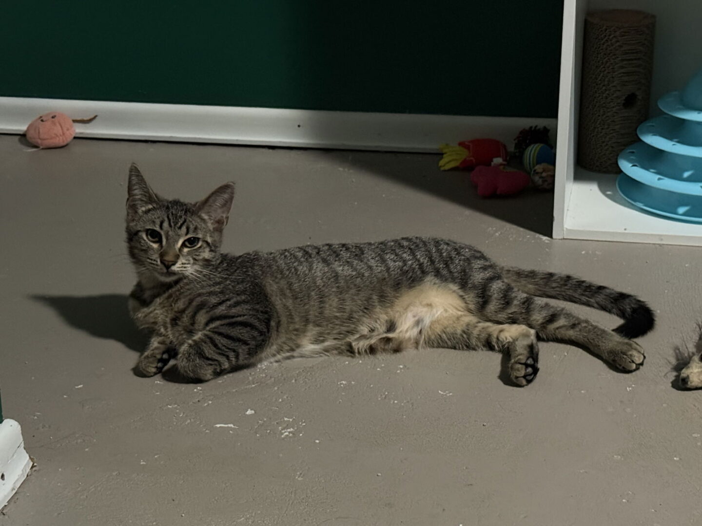 Please contact the Cat Team (catapplications@graspinc.org) for more information about this pet. DOB: 09/24/24Po is a very sweet female gray tabby who loves belly rubs and head scratches. She was found with her brother, Jax, behind a flower shop, and came to her foster home quite timid and apprehensive of humans. After lots of love and attention she is now very loving and ready for her forever home. She loves treats, chasing and jumping up after wand toys, watching wildlife out the window, and having her head and belly scratched. Po has been exposed to other cats and seems to get along well with them.The preference would be for Jax and Po to get adopted together, but we will review interest on a case by case basis.Apply to adopt today! This cat has been combo-tested for Feline Leukemia and FIV, received all age-appropriate vaccinations and is altered.
