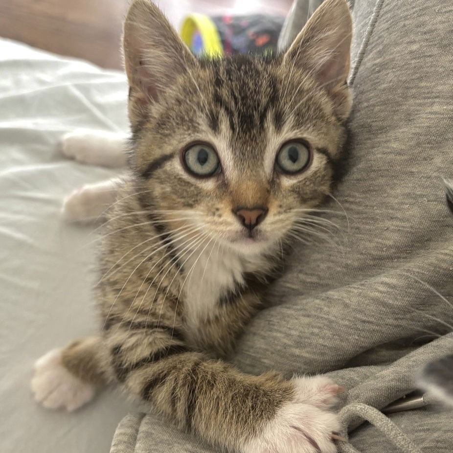 Hello, I'm Pocus! My sister's name is Hocus. Together we are Hocus Pocus! I'm not sure why I wasn't named Hocus because I sure do like to demand attention FIRST! Hehe. I have major STAR power. You should see me dribble a crinkle ball. I zip around like a little Messi. Oh and once I get comfortable with you (and it doesn't take me long), I love to jump onto your lap and get pets. And if my sister is on your lap already I kinda cut in front of her and stare at you until you PET ME!! I LOVE pets. I LOVE cuddles! I PURRR. I always see my foster parent smiling and laughing at me. I don't know what I'm doing really but I think I'm a natural ENTERTAINER. If I see a challenge like a big jump or an open door, I just GO FOR IT. No time to think!!! WEEE!! Ok sometimes I fall face flat and stuff but it's always worth it. Oh – do you want to pick me up?! I love when my foster parent picks me up and puts me on their shoulder. I can go for a ride. WEEEEE! I really do love spending time with my people. Gosh why do they always giggle when they see me? Oh I'm also good at photobombing. Check out that last photo of me. Oh there are so many more of those but my foster parent told me to just post one.I really want a forever home. My foster parent tells me that once I get a forever home, I'll have a forever people(s) and will get to explore the WHOLE house. Oh boy! I love to EXPLORE and I do sneak out of my room from time to time. (Don't tell my foster parent!) Oh and if I can go home with my sister, that would be the best. I win like EVERY wrestling match with her. I can probably do well in just about any house with any type of human, including kids! I just need love and playtime and I'll be a happy clam! I haven't met dogs yet but I think I can get along with them as long as we are slowly introduced.WE DO NOT HAVE A PHYSICAL LOCATION AS WE ARE A FOSTER-BASED ORGANIZATION. PLEASE SUBMIT AN APPLICATION TO BE IMMEDIATELY CONNECTED TO A SCREENER.Apply at online application (catsfff.org/adopt)View all of our adoptable cats here (catsfff.org/cats)Our adoption fees are listed here (catsfff.org/adoption-fees)