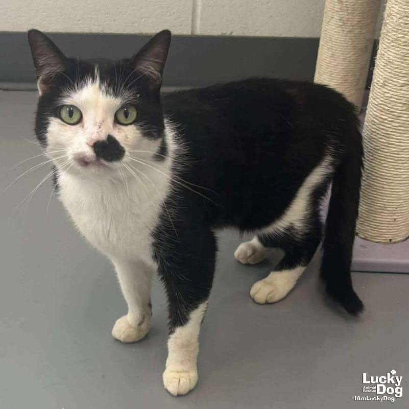 Please contact Lauren McCarty (laurenmc@luckydoganimalrescue.org) for more information about this pet.Sweet Cat Looking for her Forever Home!POLLY NEEDS A FOREVER HOME! Name: Polly Best Guess for Breed: Domestic Short Hair Age: 5 Years Est. DOB: 10/30/2020 SEX: Female (spayed) Approximate Weight: 6.8 lbs a/o 12/30 Coloring: Black and White Type of Hair: Short Gets Along With: With proper integration, Polly will likely get along with other cats, dogs and kids with an acclimation period. Currently Living at: Méo Maison Cat Cafe (1336 Wisconsin Ave NW, Washington, DC 20007). You can come visit me at Méo Maison Cat Cafe during the cafe’s operating hours! If you would like to visit the cafe, please make an appointment on their website (meomaison.com). If you want to adopt me, you will need to complete the adoption process through Lucky Dog Animal Rescue. I am Looking For: My loving forever family! Hi! I’m Polly, and I am a cute little cat! I won’t ask for much- just some love, cuddles and lots of toys so I can run and play and be my cat self. What my Foster Says About Me: Coming Soon! TO ADOPT: The adoption fee for adult cats is $200 ($350 for two cats adopted together). The adoption fee for a kitten (under 7 months old) is $220 ($380 for two kittens adopted together).If you are interested in adopting, please complete the Adoption Questionnaire online at bit.ly/adoptaluckycat. Lucky Dog Animal Rescue does our best to provide accurate information about the cats we have for adoption. That said, we cannot make any guarantees about age, breed or temperament. Thank you for contacting Lucky Dog Animal Rescue and helping to save a life! Please visit us online at www.luckydoganimalrescue.org . BE A FOSTER!!! Fosters make it possible for Lucky Dog Animal Rescue to save and care for homeless and abandoned dogs! To learn about fostering, please contact fostering@luckydoganimalrescue.org BE A SPONSOR!!!! Sponsors help Lucky Dog support the many dogs we save. To learn more about sponsorship, please contact info@luckydoganimalrescue.org !