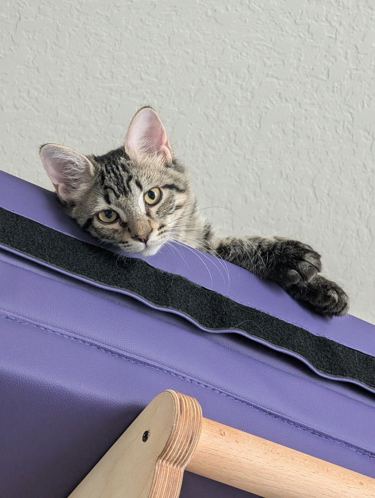 Pom is a bold little adventurer with a big heart! This striped sweetheart bursts with playful energy—zooming, pouncing, and tumbling through his day with endless enthusiasm. While he’s still deciding how he feels about being held, he’s always ready to trot over for some gentle pets and attention. With his mix of curiosity, confidence, and charm, Pom is the perfect combination of playful companion and affectionate friend in the making.To inquire about adopting this cat please complete an adoption application at tinyurl.com/ccapadoptions Once you submit an adoption application, a foster will reach out within 48 hours to schedule a meet-and-greet or ask any additional questions. If you haven’t heard back within that time, please contact **adoptions@sanantonioferalcats.org** so we can follow up. If the cat you’re interested in isn’t listed in the dropdown menu, it may be pending adoption or recently adopted, but the website hasn’t been updated yet. Feel free to email us for confirmation. Thank you for choosing to adopt one of our amazing cats!
