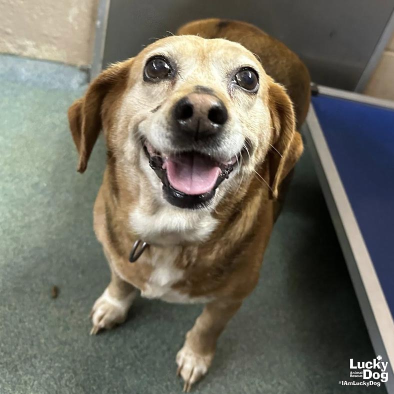 Please contact Paul Slebzak (pauls@luckydoganimalrescue.org) for more information about this pet.seeking her honey! POOH BEAR NEEDS A FOREVER HOME!!!! Name: Pooh Bear Best Guess for Breed: Beagle mix Best Guess for Age: 5 years as of April 2026 SEX: Female Approximate Weight: 25 lbs Gets Along With: Other dogs! We haven’t seen her with cats or kids but we are happy to discuss integration techniques with any potential adopters! Currently Living at: DC area foster home Pooh Bear is Looking For: Her forever home! This sweet girl landed in the shelter through no fault of her own. At about five years old, she’s past her puppy days but is up for adventure – she’s eager for sniffy walks (that beagle nose!!!) and world exploration with her humans! A cushy dog bed, quality kibble, and lots of snuggles round out her wish list. But most of all she wants to know where she belongs, that she’s safe and loved. What do you say? Does Pooh Bear have a spot in your home and heart?What My Foster Says About Me: We will update this once she has spent time in foster care. Lucky Dog cannot guarantee any dog is housebroken. All of our dogs are working on their crate training. TO ADOPT: The adoption fee for this dog is $460, which includes the cost of routine vetting, including vaccinations and spay/neuter. If you are interested in adopting, please complete the Adoption Questionnaire online at bit.ly/adoptaluckydog . Lucky Dog Animal Rescue does our best to provide accurate information about the dogs we have for adoption. That said, we cannot make any guarantees about age, breed or temperament. Thank you for contacting Lucky Dog Animal Rescue and helping to save a life! Please visit us online at www.luckydoganimalrescue.org . BE A FOSTER!!! Fosters make it possible for Lucky Dog Animal Rescue to save and care for homeless and abandoned dogs! To learn about fostering, please contact fostering@luckydoganimalrescue.org! BE A SPONSOR!!!! Sponsors help Lucky Dog support the many dogs we save. To learn more about sponsorship, please contact info@luckydoganimalrescue.org !