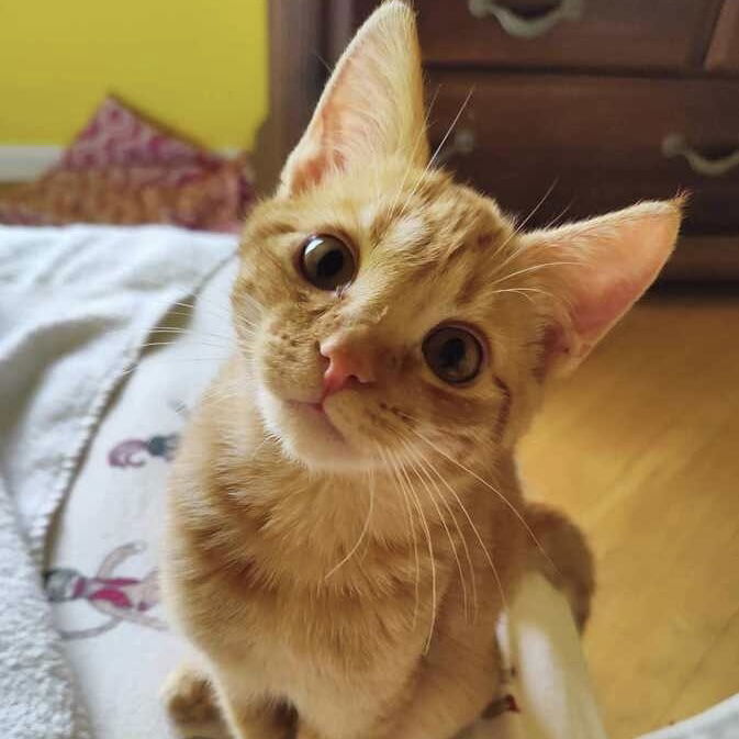 Pop, the cute little orange firecracker!This purr machine is an adorable, playful orange guy who's determined to do things his own way!He likes playing with an assortment of toys, including kicker sticks as big as him, ball towers, balls with bells, and of course, his sister, Crush!Pop can be easily picked up and held for short periods of time until he squirms and wants down to play and be on his mischievous way!Pop should do well in any household and would be great with kids and other cats. He also needs to be with a kitten or young cat and would LOVE to be adopted with his sweet sister, Crush! If that's not possible, he'd need to go to a home with a young, resident kitty.Check out cute Pop and give this adorable guy the TLC and time he needs to become a wonderful part of your family!WE DO NOT HAVE A PHYSICAL LOCATION AS WE ARE A FOSTER-BASED ORGANIZATION. PLEASE SUBMIT AN APPLICATION TO BE IMMEDIATELY CONNECTED TO A SCREENER.Apply at online application (catsfff.org/adopt)View all of our adoptable cats here (catsfff.org/cats)Our adoption fees are listed here (catsfff.org/adoption-fees)
