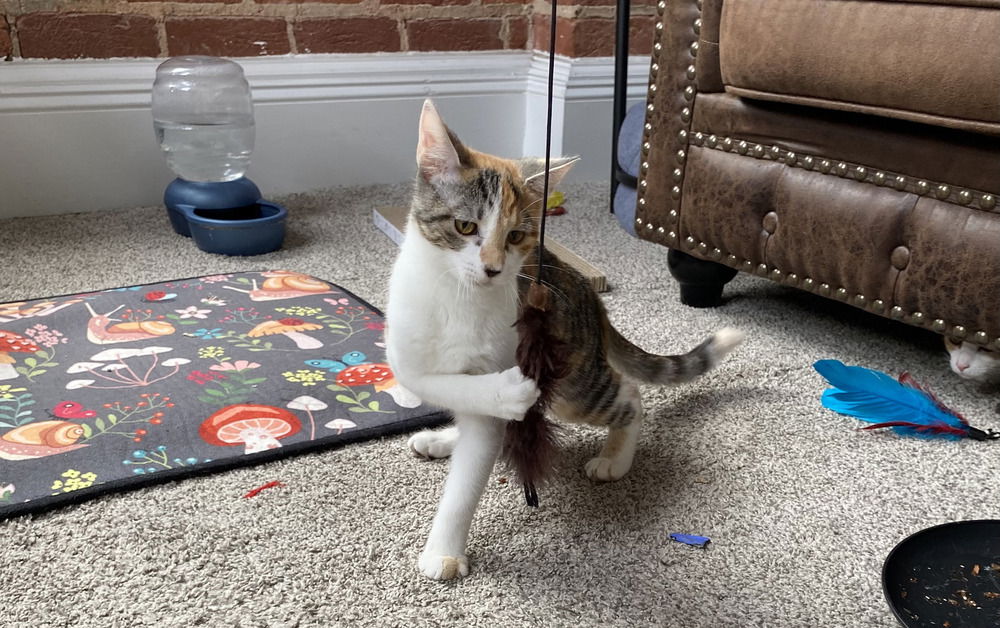 Meet Pop – Sweet, Shy, and Full of Playful Charm! Pop is an adorable female calico kitten with the softest fur and a gentle spirit. A little shy at first, she warms up quickly with a bit of patience and absolutely loves attention once she feels safe. Playtime is her favorite time—especially when it involves chasing toys or romping around with her beloved sister, Sizzle.Pop and Sizzle are a bonded pair and must be adopted together. Their connection is heartwarming, and watching them snuggle, play, and explore side by side is pure joy. If you're looking for double the love, double the fun, and double the kitten cuteness, Pop and Sizzle are the perfect pair for you!Come meet these sweet sisters and see if your home is the forever one they've been waiting for. special adoption fee for a pair: $200Please submit an online application and an adoption coordnator will contact you.