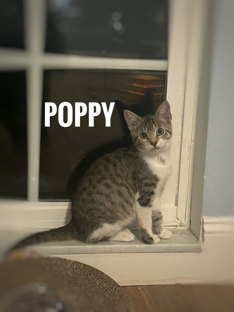 See Poppy’s HomepageGo to our official websiteYou can fill out an adoption application online on our official website.***AVAILABLE FOR PRE-ADOPTION**** (will be fixed in January when old enough) Meet Poppy, a delightful gray tabby kitten with a heart full of joy. Her days are filled with playful antics, gentle cuddles, and friendly interactions with everyone she meets. Poppy's sweet nature makes her the perfect companion for any loving home. She eagerly awaits playtime and thrives on affection, always ready to purr and snuggle into a cozy lap. Adopting Poppy means bringing a bundle of love and liveliness into your life, ensuring endless smiles and cherished moments. Interested in adopting: fill out an application and text/call Kim (407) 286-8577 to set up a meet and greet! Location: Petsmart Deland