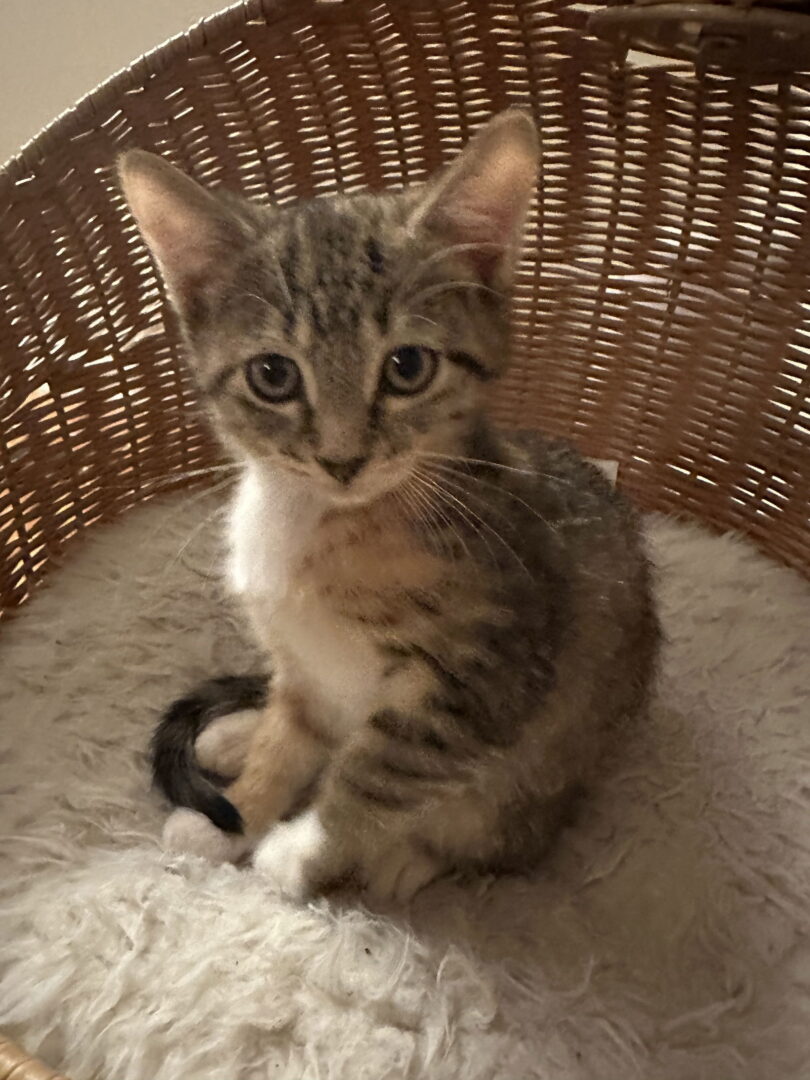 Porsche was born in her Bristol foster home along with five siblings. This beautiful tabby and calico girl is a talker when she wants her human's attention. She loves playing, especially with any of her siblings. When she finally tuckers out, she is ready for affection! At the moment, Porsche is not a fan of dogs, but she is being slowly introduced to the resident dog in her foster home to see if she will warm up. Porsche was born on September 2, 2025, and is currently being fostered in Bristol. Once she is fixed, up-to-date on shots, and has tested negative for FIV/FeLV sometime in December, she will be available for adoption. All of our cats and kittens are cared for in loving foster homes. "Meet and Greets" can be arranged only after an application has been submitted and approved. Applications for adoption can be found at our website at www.fosterandforever.org. Our volunteers do their best to respond within 24-48 hours.