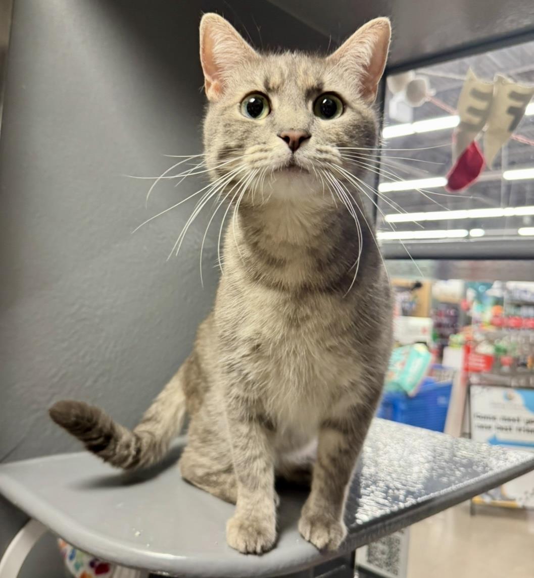 Approximate Date of Birth: 5/17/2024 | Meet Prada Purrness! Prada is a friendly, wonderfully chatty girl who loves being close to her people. She’ll happily trot over to ask for pets and soak up all the affection. This stylish little lady adores snoozing in her cat tree by the window, watching the world go by, and she’ll never say no to chasing treats or indulging in a well-deserved Churu. Prada is the perfect mix of social, sweet, and independent—and she can’t wait to charm her forever family! | Cats: Likes with proper introduction | Dogs: Likes dogs with proper introduction | Kids: Can live with children over the age of 12| Health information: All cats and kittens are spayed and neutered, preventatively dewormed, and microchipped. In addition, they are FeLV/FIV tested and vaccinated as appropriate by age. | Interested in adopting? Apply to meet and adopt. | How to apply: please fill out application at https://www.savingonelife.org/adopt/apply/