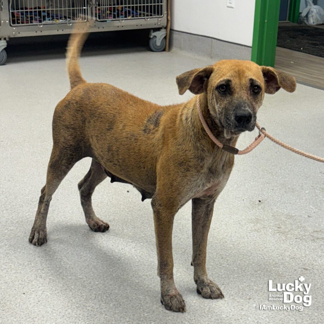 Please contact Ann Marie Burns (AnnMarieB@luckydoganimalrescue.org) for more information about this pet.sweet mama ready for her own family! PRIM NEEDS A FOREVER HOME!!!! Name: Prim Best Guess for Breed: Terrier and lab mix Best Guess for Age: 2 years as of October 2025 SEX: Female Approximate Weight: 40 lbs Gets Along With: Other dogs! We haven’t seen her with cats or kids but we are happy to discuss integration techniques with any potential adopters! Currently Living at: DC area foster home Prim is Looking For: Her forever home! This sweet mama did a great job of raising her baby Petey and he’s ready for his own family. Now Prim is eager to get her own humans. She’s a young girl and looking forward to sniffy walks, romps in parks, and all the adventures her people can dream up. Making pup pals along the way would be great too! Most of all, though, she wants to be safe and loved, to know where she belongs. She has so much love and loyalty to offer in exchange. What do you say? Is she the one for your home and your heart? What My Foster Says About Me: We will update this once she has arrived in the D.C. area and spent time in foster care. Lucky Dog cannot guarantee any dog is housebroken. All of our dogs are working on their crate training. TO ADOPT: The adoption fee for this dog is $460, which includes the cost of routine vetting, including vaccinations and spay/neuter. If you are interested in adopting, please complete the Adoption Questionnaire online at bit.ly/adoptaluckydog . Lucky Dog Animal Rescue does our best to provide accurate information about the dogs we have for adoption. That said, we cannot make any guarantees about age, breed or temperament. Thank you for contacting Lucky Dog Animal Rescue and helping to save a life! Please visit us online at www.luckydoganimalrescue.org . BE A FOSTER!!! Fosters make it possible for Lucky Dog Animal Rescue to save and care for homeless and abandoned dogs! To learn about fostering, please contact fostering@luckydoganimalrescue.org! BE A SPONSOR!!!! Sponsors help Lucky Dog support the many dogs we save. To learn more about sponsorship, please contact info@luckydoganimalrescue.org !