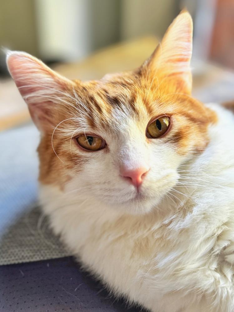 Occasionally when we rescue street cats, we find one that appears to be royalty in disguise. And such was the case with Princess Dasha. Dasha’s mama cat moved her 3 kittens onto a roof to keep them safe, but she did not have enough milk for her kittens, so they were underweight and very fragile. Once in custody with plenty of food and care the kittens slowly recovered and each began to show their own distinct personality. Dasha is calendar-cat beautiful, a rare orange and white female. (Did you know that most orange cats are male?) While she loves to play like a kitten, she can be a bit reserved around new people, as befits royalty. But once you have earned her trust (which does not take long) she will shower you with purrs, affection, and invitations to play. Dasha loves to nap in your lap or next to you, and is extremely huggable, with a soft almost-medium length coat. To this Princess, the lap of luxury means YOUR lap. For more information & an online application go to https://www.communitycatrescue.org/adoption/cat.php?id=1652&ts=1761721288&src=rg