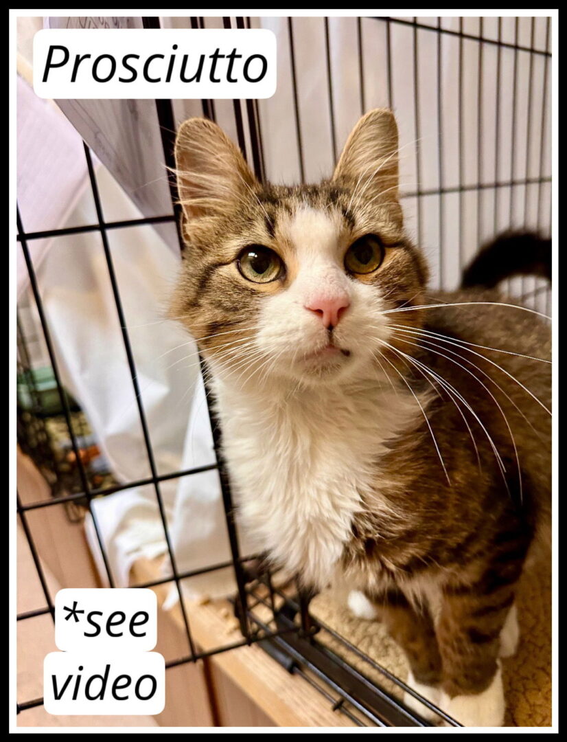 Meet Prosciutto! What a gorgeous young man! With his fancy ear fluffs and luxuriously fluffy tail, Prosciutto is sure to turn heads wherever he goes. He may grow into a big, handsome boy—just like his dad, Sebastian (who’s also looking for his forever home!). Prosciutto loves gentle head scratches and has a mellow, affectionate personality. He’s perfectly content lounging and watching the world go by, but don’t be fooled—he still has plenty of playful energy when the mood strikes! This charming young cat would make a wonderful companion for anyone looking for a sweet, easygoing friend. ❤️ Please check out his video: https://www.youtube.com/shorts/IVnqcY2eoI8 . Please submit our no-obligation Adoption Application for a meet and greet or to adopt: https://forgottencats.org/adoption-application/. Not ready to adopt? Please consider fostering: https://forgottencats.org/foster-a-cat/. Thank you! (Foster: Willow Grove)