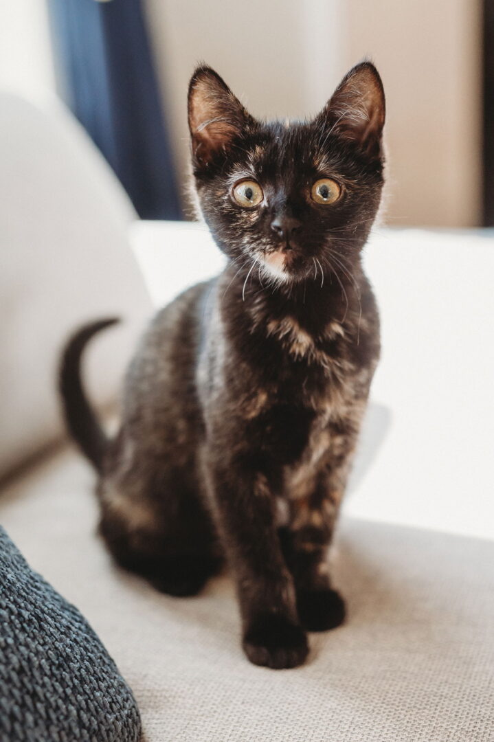See Pumpkin’s HomepageGo to our official websiteYou can fill out an adoption application online on our official website.North Texas Cat Rescue P.O Box 1504 McKinney, TX 75070 214.454.9395 www.northtexascatrescue.com Pumpkin is a darling tortie kitten who breaks all the tortie stereotypes—she doesn’t have a hint of “torti-tude.” Instead, she’s a gentle, loving little girl with a heart full of affection. With her adorable “perpetually surprised” expression, she’s guaranteed to make you smile every time you look at her. Pumpkin has a quirky side too—she’s fascinated by eyelashes and might just try to play with yours if you let her! When she’s not mesmerized by your eyes, she’s bursting with kitten energy. She loves to play, pounce, and wrestle, making her a perfect match for a home with another young cat. Good news is she has 5 siblings available for adoption too! Pumpkin is as sweet as her name suggests and would thrive in a home filled with love, playtime, and snuggles. If you’re ready to welcome this curious, cuddly kitten into your family, Pumpkin is ready to bring her unique charm into your life.Please contact NTCR AT 214.454.9395 should you have any concerns or questions. Please note: We appreciate all interest in our cats and kittens, but we are an all volunteer organization. Please be patient with regard to a call back. Should you need to surrender the cat you adopted from NTCR, please email us at surrenderNTCRcat@northtexascatrescue.com.