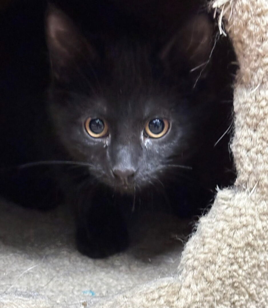 Pumpkin is a Female Black DSH Kitten Here is the adoption process: To adopt an animal you must complete an application and be approved. There is a $60 fee for any animal which needs to be cash or a check – NO CREDIT CARDS. If the animal is not spayed or neutered, there is a $35 deposit which will be returned upon proof of surgery. All dogs must be licensed before leaving the Shelter. Please note that public offices that issue dog licenses are not open on Saturdays and Sundays. All cats must leave in a carrier. Thank you for considering a homeless animal.