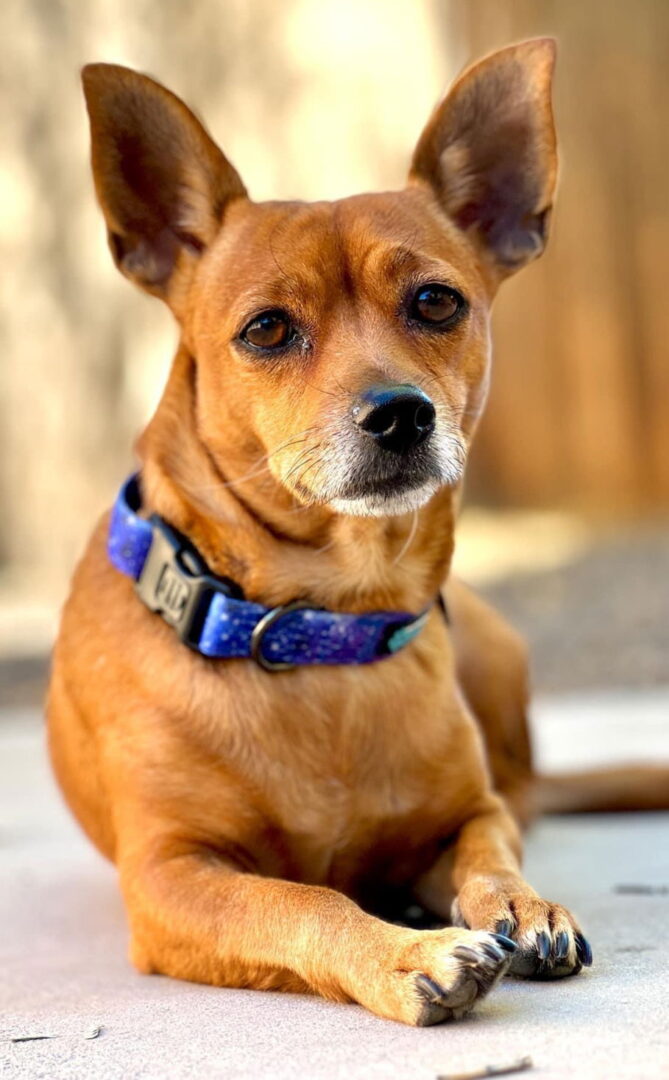 Found as a stray. Finder could not locate owner. Friendly but reserved at first.