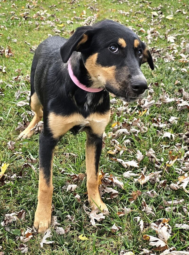 When you meet Moonbeam, our special 6 month old Shepherd mixed girl and 40 lbs, you are struck by her obvious beauty and her intense zest for life. This girl is all in every day, every hour and in every way. She delights in playing with other dogs and she can take on the most rough and tumble dog on the block. She is very affectionate, but will need the safety of a contained and physical fence in the backyard so she doesn’t run off looking for the next human to make friends with. She has been around children 6 and above and does beautifully. We are trying to polish her leash skills and that needs a little more time and practice. She’s pretty much housebroken, when on a schedule and knows what the rules are. She knows her crate but not the biggest fan of one. This girl would blossom and thrive in a family with another dog that is not an ‘ in your face’ alpha kind of dog. She embraces all dogs unless they absolutely push the envelope and get in her face for a challenge. She will be a wonderful family companion and will be probably a 55-60 lb girl when fully grown. If you wanted a shepherd mix all your life, then this girl absolutely will fit the bill. Contact Critter Cavalry Rescue at ccrnewengland@gmail.com PLEASE NOTE: Our dogs and cats are fostered in Tennessee and can transport weekly up to the Northeast region. Request an application and learn more about Critter Cavalry at https://www.crittercavalry.com/adoption.