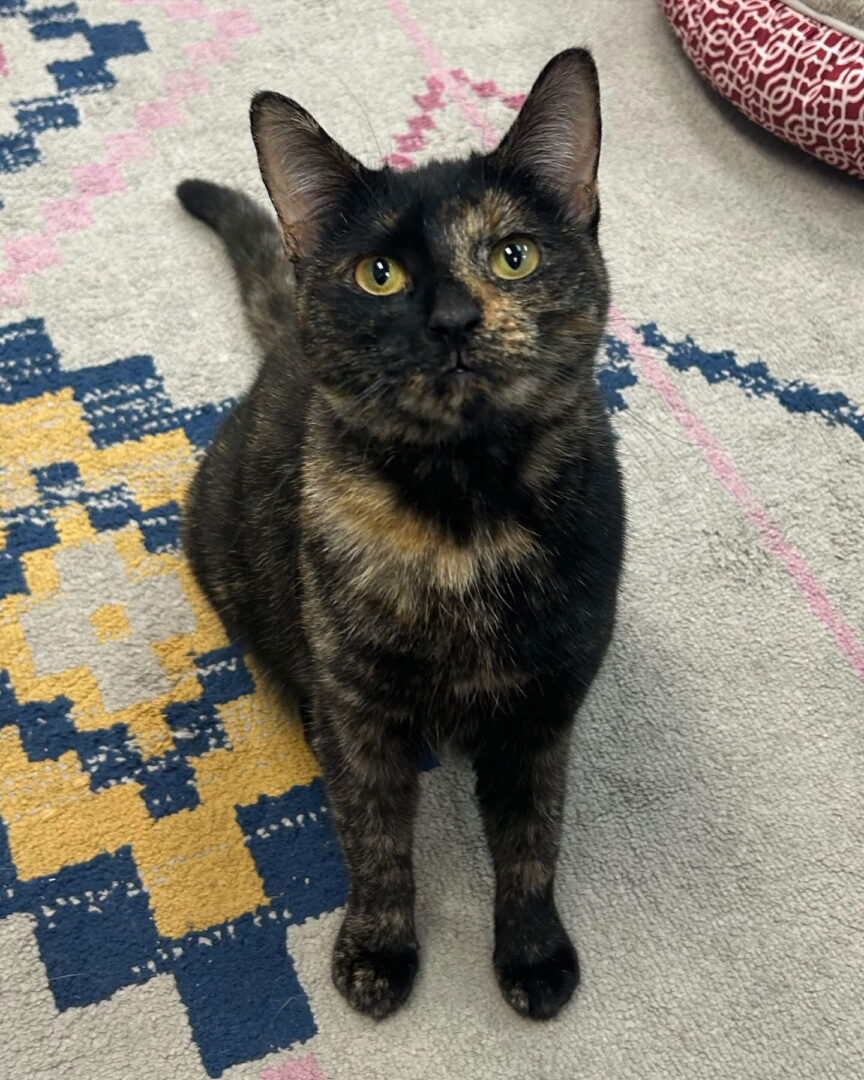 See Queen’s HomepageGo to our official websiteYou can fill out an adoption application online on our official website.Queen aka Ms Lovey aka Ms Inquisitive is AMAZING. She loves humans and pretty much insists on being right with you. She likes to think she's "helping" and oversees pretty much any activity her human is involved in. She purrs up a storm and gets along well with the other kitties in her foster home so she will need a young companion kitty in her forever home. Although her name is Queen, she doesn't exhibit the typical tortie attitude. So if you like a tortie that thinks she's an orange cat–look no more. Queen also plays like the best of them: stuffed mice, spring toys and wand toys are all on her favorites list. Most importantly she needs a human that wants a cat that thinks velcro should be her middle name. Queen is UTD on vaccines, has tested Felv/FIV/HW neg, has been dewormed, microchipped and spayed. An adopter with previous documented annual feline veterinary history is required.