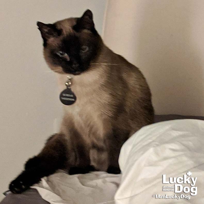 Queen needs a castle of her own!QUEEN NEEDS A FOREVER HOME!! Name: Queen Best Guess for Breed: Domestic Short Hair Age: 6 years (Est. DOB: 11/6/2018) SEX: Female Approximate Weight: 8 lbs Coloring: Siamese Type of Hair: Short Gets Along With: Queen would likely do best as the only pet in the home. She may be ok with others with a slow, careful integration. We’re happy to help with tips and tricks! Currently Living at: Foster in the DC area! I am Looking For: My forever home! Hi- I’m Queen, a sweet siamese lady. I won’t ask for much…just some love, cuddles and a sunny place to nap. And maybe a few toys too! What My Foster Says About Me: Queen was a bit shy for the first few weeks but has become very trusting and friendly. She is still scared and will hide if she is afraid of something. She is very sweet. She loves to be around her person. She loves to play with a toy wand. She will show affection with rubbing/licking. Although she is not a lap cat, she will try to be close as possible and lay beside me, and reach out a paw to be as close as she can be. She is ok being alone, but likes to be with a person, and likes looking out the windows, and playing. When she feels safe, she is a secure cat in her behavior. She will greet you at the door and will be excited to see you once she is comfortable. She can be picked up, although she will let you know when she wants to be put down. Again, when she really trusts you, she enjoys being picked up and walked around while being held. She is a wonderful cat! TO ADOPT: The adoption fee for this cat is $200 ($350 for two cats adopted together). If you are interested in adopting, please complete the Adoption Questionnaire online at bit.ly/adoptaluckycat. Lucky Dog Animal Rescue does our best to provide accurate information about the cats we have for adoption. That said, we cannot make any guarantees about age, breed or temperament. Thank you for contacting Lucky Dog Animal Rescue and helping to save a life! Please visit us online at www.luckydoganimalrescue.org. BE A FOSTER!!! Fosters make it possible for Lucky Dog Animal Rescue to save and care for homeless and abandoned dogs! To learn about fostering, please contact fostering@luckydoganimalrescue.org. BE A SPONSOR!!!! Sponsors help Lucky Dog support the many dogs we save. To learn more about sponsorship, please contact info@luckydoganimalrescue.org!