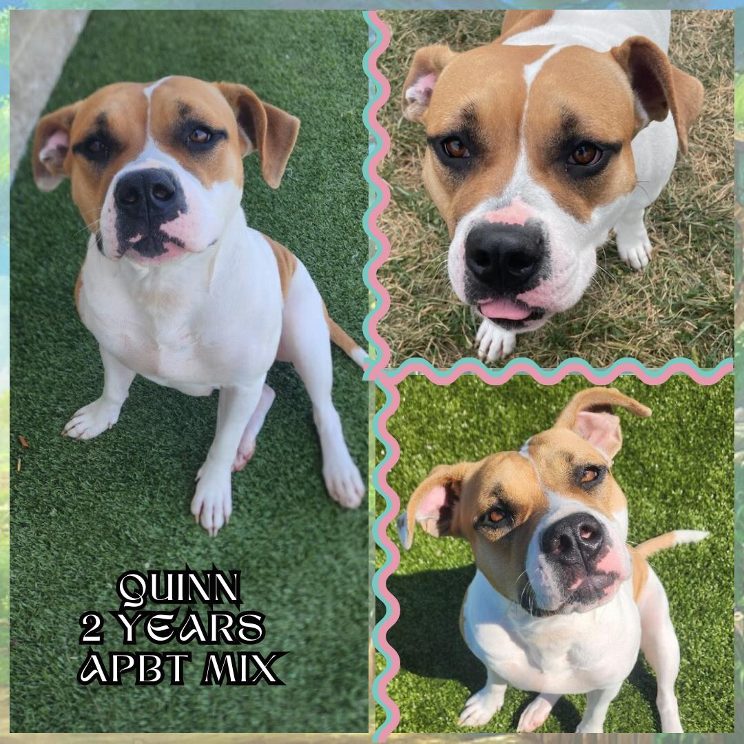 Meet Quinn, an endearing, 57#, 2-year-old female APBT mix with a personality as vibrant as her playful antics! Quinn is a bundle of joy who absolutely adores playing fetch, always ready to chase after her favorite toys with boundless enthusiasm. Her sweet and affectionate nature shines through in every interaction—she's a true treat lover, and her eyes light up at the mere mention of a snack. Quinn's love for her humans is evident in the way she eagerly seeks out cuddles and attention, making her a cherished and loyal companion. Whether she’s engaged in a spirited game of fetch or lounging contentedly on the couch, Quinn’s delightful presence and spirited playfulness make her an irresistible and treasured part of any family. We do all adoptions with approved applicants by appointment only. If you are interested in adopting, please contact us via FB Messenger or email us at jcasreception@co.johnson.in.us for an application. You can also find one on our website at http://johnsoncountyanimalshelter.com/adopt/. Once an application is submitted and approved, we can set an appointment to meet the pet
