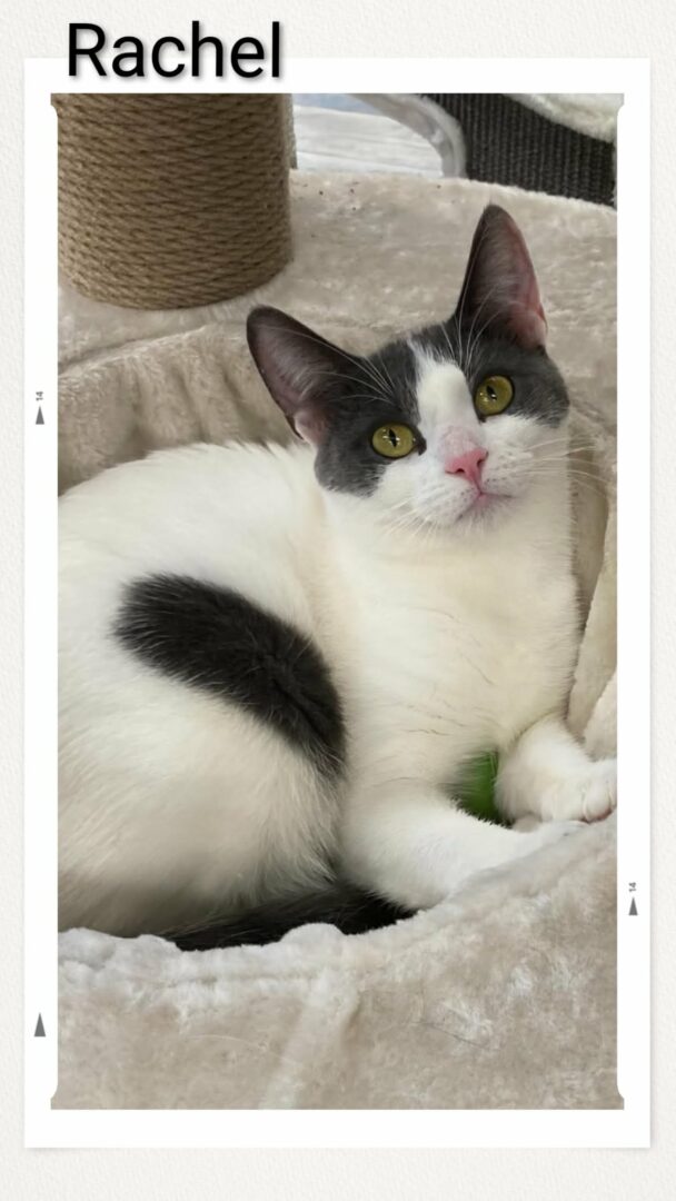 RACHEL – DSH, female,spayed, grey & white, DOB Jan 9/26