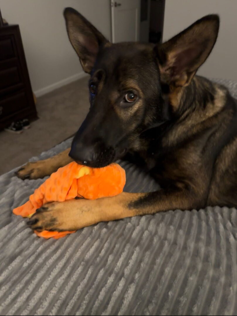 See Radar – Adoption Pending’s HomepageGo to our official websiteYou can fill out an adoption application online on our official website.Hello Everyone! My name is Radar. I am an amazing 1-year-old, 80-pound German Shepherd with lightning speed. I am strong, smart, very kind, and have outstanding energy. My personality: Did I mention I am energetic? I’m always ready for any time outdoors. I walk and love to meet new friends, regardless if they have four legs or two. I haven’t spent much time around cats, so I don't know how I feel about them. I haven’t gotten to hang out with kids but I know we’d love each other too. Because I am so large and energetic, I may accidentally knock over small humans, though. I am also housebroken and crate trained. I am very silly. I’m always busting out the zoomies and doing tricks off the couch. My favorite is chasing my teddy bear and tennis balls back and forth. Oh and when they go under the couch, I love it when I find them on the other side!! What I'm looking for: Okay, now serious. I am looking for an energetic and enthusiastic family that's ready for laughs and fun. I need a human who can help me learn boundaries. My perfect home would be one with people who lead an active lifestyle, who enjoy playtime as much as I do. A backyard with a fence would be really rad. I would love having friends to the end, making wonderful memories, having lots of fun, belly-aching laughs, and exploring the world. If you want to make every day exciting I'm ready! If you want to add me to your pack, please contact your adoption coordinator. If you do not have one yet, please complete an adoption application at www.freedomgermanshepherdrescue.org. I am being fostered in Charlotte, NC.