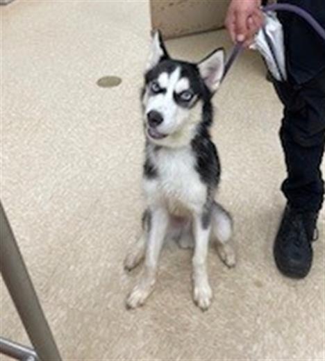 Ragnar is a typical husky puppy– mouthy, energetic, and willing to yell about all his opinions! As a young dog, he still has a lot to learn about the world and will need someone with a sense of humor and a large amount of patience to help him navigate his new life. He has a knack for getting into anything and everything he can reach, but can learn boundaries with positive reinforcement, and he loves to run around and play with his people! OTHER PETS: Ragnar was nervous while meeting another dog at first, but once he became more comfortable he was running around & jumping all over the other dog! He’s eager to play, and would likely do well with a dog who can match his play style or a dog that’s tolerant. [Dogs Likely (Must Meet First)] ABSOLUTELY NO CATS OWNER EXPERIENCE: Huskies are notorius for finding ways out of things meant to contain them. Someone who has experience with huskies, or someone with a lot of dog experience would be best suited to provide the patience and positive support that will help Ragnar thrive. [Experienced] KIDS: Ragnar has some moderate resource guarding over food– giving plenty of warning before making it clear that he doesn’t want to be bothered while he eats. Because of this and how mouthy he can be, Ragnar would do best around older kids who can both handle him when he’s excited and understand when to let him have his own space. [12+ (Must Meet First)] ACTIVITY LEVEL: Ragnar is a very energetic puppy, and will absolutely find his own entertainment if he’s left to his own devices. Huskies are high energy dogs that need both physical exercise and mental stimulation daily. With the benefit of positive training, Ragnar could become an amazing adventure buddy! Multiple long walks, possibly doggy daycare, and adventures as often as possible will make sure that he has positive ways to release his energy. [Olympic Athlete] VETERINARY CARE: [Routine] LEVEL OF TRAINING NEEDED: Ragnar is still at the beginning of his learning journey, and will do best with someone who can offer both patience and confidence while he adjusts. Positive reinforcement training will help Ragnar not only learn his basic cues, but also open up opportunities for more adventurous activities like hiking and dog sports! It will provide a good opportunity for him to bond with his new owner as well. [Moderate / Intense] GROOMING: Huskies need routine brushing in order to maintin their coats, they shed a lot and blow their entire coats twice a year. If their coats are not maintained properly, Huskies will get matted and will need professional grooming in order to keep them healthy and happy. [Routine Brushing]