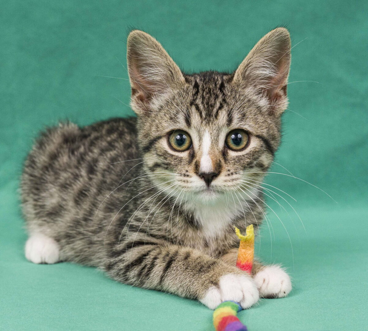 Estimated Birthday 06-01-2024 Okay to live in a home with… KidsDogsCats Physical Description Rai is a female grey tabby with a white chest and paws and a cute white stripe on her nose. Personality Rai is a sweet, wonderful little girl. She is playful and affectionate, with a wonderful purr. She loves cuddling and wrestling with her brothers. Give her a ball, and she will kick it around. This kitty has what sort of characteristics? AffectionateCuriousHigh energyLikes pettingLikes to cuddleLap catTalkativePlayfulShy at first The best home to adopt me would be Any home The best home atmosphere would be Moderate activityLively/active Other animals? Lived successfully with other catsMust be adopted with another kitten or to a home with a resident catLived successfully with dogs Apply to adopt here! Online cat application form Applications are also available on the website (www.yolospca.org) It can take up to 3-5 business days to hear back once you have submitted an application. The Yolo County SPCA is a private, not-for-profit, foster home-based animal rescue organization and does not have a shelter. All our animals awaiting adoption are in foster homes. For more information about this animal, please email yolospcafoster@gmail.com. For more general questions, please see our website at www.yolospca.org. All of our felines have been altered prior to adoption. Kittens have been given their first shots of FVRCP, adults are up-to-date on vaccinations, and all cats have been Feline Leukemia tested (negative) and micro chipped. The fee to adopt is $135 for kittens or $80 for adults over 1 year (the fee helps cover these costs and the cost of the microchip registration). A reduced fee is available for adopting a second cat or kitten For more information about an animal, please email yolospcafoster@gmail.com. For more general questions, please see our website at www.yolospca.org.