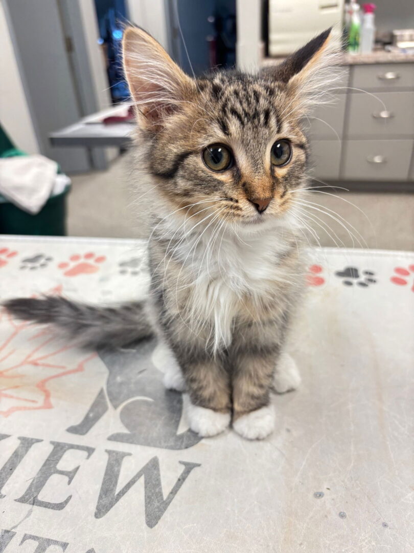 Ralph Clawford is a very friendly and playful kitten! We suspect him to be about 10 weeks old (as of the week of November 11). He has a beautiful medium to longhair fur coat. He is currently in a foster home with our other kitten, Kendal Snow. The $125.00 adoption fee ( payable by cash or check only ) includes: spay/neuter; vaccinations; microchip; fecal testing w/ giardia, flea prevention, and FIV/FeLV testing. Our adoption application may be found by going to: www.headinhomerescue.org; then click on the link to the adoption application. Cats for adoption may be seen by appointment only following an approved application. Please note: while we welcome out of state applications, we do not ship our animals and require adopters to come to Holland to finalize any adoption.