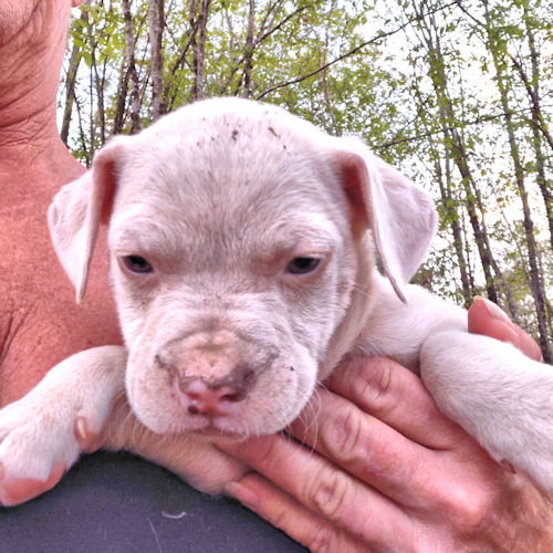 Rambo is a male white bulldog mix puppy, born on February 15, 2026. He is the biggest of the litter. Rambo is white with a cute speckled nose. He has adorable, tiny eyes. Rambo is very laid back, easy going, and loving. Rambo had his first vaccine and deworming on April 2. Rambo will be due his second vaccine on April 22. Rambo can be adopted locally right away, but he cannot travel out of state until April 24, after his second vaccine. He can be pre-adopted, but adopters will have to wait for him. The adoption fee is $325. This covers the cost of spay/neuter, DHPP, Rabies, Flea, tick, heart worm check, worm treatment, and microchip. To adopt, you need to first fill out an application. Go to: https://rutherfordcountyhumanesociety.org/dog-adoption-application/ We are located in Western North Carolina. Optional transport is weekly. After your application is approved, we will contact you regarding cost and delivery if you so desire.
