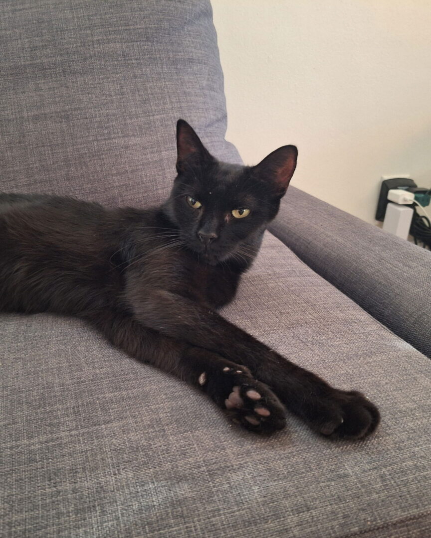 To adopt this cat from Black Cat Rescue, please fill out a profile https://blackcatrescue.com/adopt-cat-boston Ramona is a sweet 1 year old girl. Ramona has chronic rhinitis and uses an inhaler twice a day which manages her excess mucus production. This is what her foster human says about her: How would you describe the cat's general personality? Ramona is super sweet and playful with just the right amount of sass to make you love her even more. Does the cat enjoy being pet? Yes! Especially in the morning when everyone wakes up. If yes, on what parts of its body does the cat like to be pet? Head, cheeks, and back. Are there any parts of its body that the cat does NOT like being touched? Her tummy is often off limits. Does the cat come on your lap? Yes, especially if you have a soft blanket across you. Does the cat like to be held? No, not for long periods of time. Does the cat sleep in your bed? Some of the time. Does the cat seek your attention? Yes, especially in the morning and around meal times. She also likes to be around her people. Does the cat like to play? Yes! What are the cat's favorite games and toys? String, laser pointer, any pencils left out. How vocal is the cat? Not very What kinds of sounds does the cat make? Her most common meow is a super cute, almost silent one. Does the cat scratch a scratcher? Yes! And if she tries to scratch on furniture, moving a sisal scratching post right next to it will solve your problem. Does the cat always use the litter box? Yes! What food and frequency is the cat currently eating? Dry food out all day and some wet food twice a day. Is the cat picky about food? Not picky exactly, but because she is missing some teeth, some textures are harder to eat than others. She seems to prefer chicken pate. What is the cat's favorite treat? She loves the squeezable ones like Churu. Does the cat ever swat (claws in) at you? If so, under what circumstances? Yes, she'll sometimes give you a little pat when you walk past her, especially if she thinks you should be feeding her. Has the cat ever scratched (claws out) you? No Does the cat ever nip (teeth without breaking skin) you? Only gently and during play Has the cat ever bitten you (breaking skin)? No To the best of your knowledge, how does the cat react to new people? Social? Fearful? She is indifferent to new people. Neither afraid nor particularly interested. She is always friendly with whomever approaches her. Does that cat have any cute/quirky traits that aren’t covered by the previous questions? She likes to roll over in the cutest way. She as a cute swagger when she walks that we have dubbed her "runway walk" or "model walk". In your opinion, what is the best thing about the cat? Why should an adopter choose THIS cat to adopt? She is very friendly and will want to hang out with you and get head scritches. She likes to sit near you or in your lap on the couch. In the morning, she will definitely come find you for pets and love. What are the cat's challenges and how have you found to best manage them? She likes to stand on the edge of the litter box and move litter around a lot before using the litter box. This has led to the box tipping a few times. Getting a higher walled litter box helped a lot with this, and one with a lid would probably solve this, too. To learn more about adopting this cat in Massachusetts, please visit www.blackcatrescue.com or fill out an Adoption Profile at https://blackcatrescue.com/adopt-cat-boston.