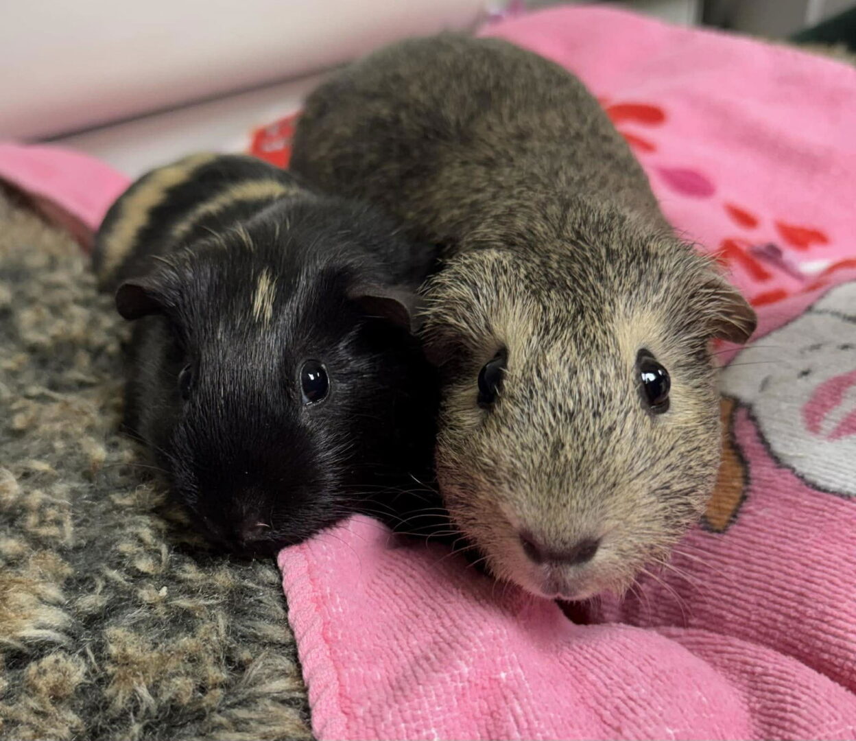 Name: Rasinet & Twix Age: Adult & Juvenile Date of Birth: 9/30/2024 & 11/3/2025 Gender: females Child friendly: Older gentle children, please Temperament: happy, intelligent, sweet, talkative Energy Level: moderate Adoption Fee: $40 +tax fee includes both Guinea Pigs To adopt, go to: www.mendingspirits.org/apply-to-adopt.html Double the squeaks, double the sweetness — Rasinet and Twix are the mother-daughter duo you didn’t know you needed! Rasinet and her daughter Twix are an adorable bonded pair who bring constant charm and personality wherever they go. Sadly, these sweet girls were found abandoned in a box at a local animal shelter. Despite that rough start, they have remained trusting, loving, and full of life. The moment they hear footsteps — especially in the morning — they begin their happy little “wheeks,” eagerly asking for attention, fresh veggies, and a little love. It’s impossible not to smile when they greet you! They absolutely adore their daily greens, peppers, and carrots, and will chatter excitedly while you prepare their snacks. Give them a big, fresh pile of hay and they’re in heaven — tunneling, burrowing, playing, and then curling up together for cozy naps. Their bond as mama and daughter is truly special. They feel safest and happiest together, and watching them interact — following each other around and settling in side by side — is pure joy. About Us: Hi! I’m Rasinet, and this is my daughter, Twix. We’re a sweet, social pair of guinea pigs looking for our forever home — together, of course! We may have been left behind once, but we’re ready for a fresh start filled with love, gentle voices, and plenty of veggies. If you’re ready for twice the love, twice the personality, and twice the adorable little squeaks, we can’t wait to meet you. Come bring us home — we promise to fill your days with happy wheeks and sweet companionship.