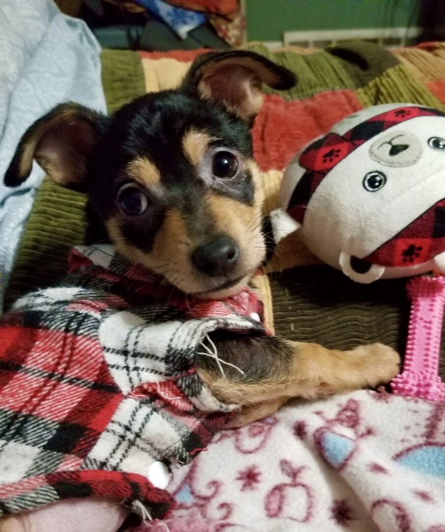 Sweet Reba and her little family is safe. Reba is all of 3.7 pounds. She is puppy pad trained. She loves to play with toys and the other dogs in the foster home. Because she's a baby, Reba eats 3 times a day. Reba is a total lap dog, loves to give kisses and sleeps all cuddled up with her foster Mom. She is smart and is a fast learner. If you think Reba is the girl for your family apply at oneloveanimalrescue.orgTo be considered as this pet's adopter, please go to https://oneloveanimalrescue.org/adoption-applications/dog-application/ to complete your application.