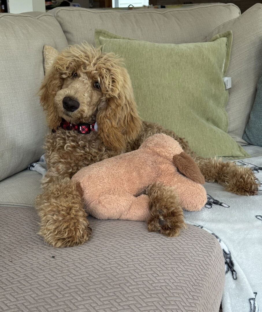 See Reginald’s HomepageGo to our official websiteYou can fill out an adoption application online on our official website. Thank you for stopping by to see me! Please fill out an application to set up a private meeting. Keep checking back for upcoming events I will be attending! Reginald may have the name of a fancy British gentleman, but in reality he is a soft, curly poodle youngster who mostly wants to be your devoted little shadow. At home he is a full-on love bug who believes the sofa is for snuggling, the bed is for even more snuggling, and pillows are for politely resting his head like the refined prince he assumes he is. He is friendly with everyone, gentle as can be, and definitely not the “in charge” type. In fact, he was so timid at first that he didn’t bark for an entire week, but once he started hanging out with his foster dog sister he decided that maybe barking didn’t seem too scary after all. Potty training is nearly there—he knows to go outside, but the back-and-forth between city and farmhouse living has made his routine a little wobbly. With one home base and a steady schedule, he’ll be solid in no time. He’s never had an accident in his crate or in bed, which is impressive for a pup who hasn’t really had a real home before. He loves to run around outdoors, was absolutely thrilled at the farm, and is doing fine on a leash even though he’s still learning. Since he’s lightweight he does pull a bit, but he’s not reactive and doesn’t jump at people or animals. He simply trots along trying his best. Reginald is extremely food motivated, which makes teaching him new things easy. He already follows his foster dog’s cues, comes when called, and understands “go potty,” even though he learned that more by imitation than training. A Kong stuffed with peanut butter is his idea of heaven, and he adores soft squeaky toys. In the car he gets quiet and nervous, but he handles it with sweet stillness rather than fussing. He’s fantastic with dogs, gentle with adults, and may do wonderfully with seniors looking for a snuggly, affectionate companion. He hasn’t been tested with kids or cats yet. Because he doesn’t reliably potty on a leash, a fenced yard will be important for him. He’s truly a baby who never had the chance to feel safe or loved, yet he is shockingly friendly, trusting, and well adjusted. Give him twenty minutes and he’ll be curled in your lap like he’s belonged there forever. Reginald is beautiful, tenderhearted, eager to please, and so ready for a family who will adore him. With love, consistency, and a little training, he will blossom into the most loyal, snuggly, gentle little companion you could ever ask for. **Obedience classes are required when adopting this puppy from Underdog Rescue. Many of our puppies have a mama who was not properly socialized before coming to Underdog Rescue. Since coming to Underdog, this puppy has been in a socialized and loving home, but that needs to be continued with its Adopters. Training classes teach puppies the ins and outs of being a pet while creating a bond with their new Adopter. Obedience classes are key to creating a relationship with your puppy while having it be a happy and successful member of society. Proof of Obedience Class registration is required for this puppy before adoptions can be finalized. If you would like some suggestions, we would be happy to send some trainers who have experience with Underdog Rescue, but a Basic Obedience class in your area should work! Please note that some of our dogs are obtained from shelters, surrendered to our care, or released from breeders. Each animal's bio is based on our experience of the animal within our care, an educated guess based on physical characteristics, temperament and information shared. Each dog receives basic grooming when coming into rescue, but for some dogs they have not received grooming attention until recently and grooming may be required shortly after adoption. This will be at the adopter’s expense, so we encourage you to research the breed and be prepared for grooming expenses. Underdog cannot guarantee hypoallergenic or non-shedding qualities of any dogs in our rescue. Some of the animals come from situations where they are lacking experience in a home and confidence in humans. In turn, they require another companion dog and/or a fenced in yard in their forever home in order for them to feel safe. If you are interested in a particular dog whose bio states those needs and do not currently have them, please understand that your home might not be the right fit. Please use the filter on our Adoptable Dogs page to find the perfect match for your home. This puppy requires an application fee. This fee must be paid within 24 hours or your application will be considered void. We will not review or contact applicants that have not completed the payment portion. Puppy Applications will be responded to within 5 business days, after receipt of the application fee. Please understand that paying the fee does not guarantee you will be approved to adopt the puppy. Our goal is place puppies in homes that are suited for their individual needs. You may be willing and able to provide a great home, but if it doesn’t meet the specific needs of the puppy, we will not approve your application. We accept applications for puppies until we have a candidate that meets all of the requirements needed for the specific puppy and they have been contacted to review the adoption process as well as agree to all of the terms to move forward. ***Be sure to check your spam/junk folder as sometimes our emails end up there*** If you have other questions about me you can email Underdog Rescue at <inquiries@underdogrescuemn.com> ADOPTION EVENTS: Adoption events are updated at the top of each dogs animals' as their foster home signs up. Check back for updates on which events they will be attending. If an event is not listed within their bio above, the animal 