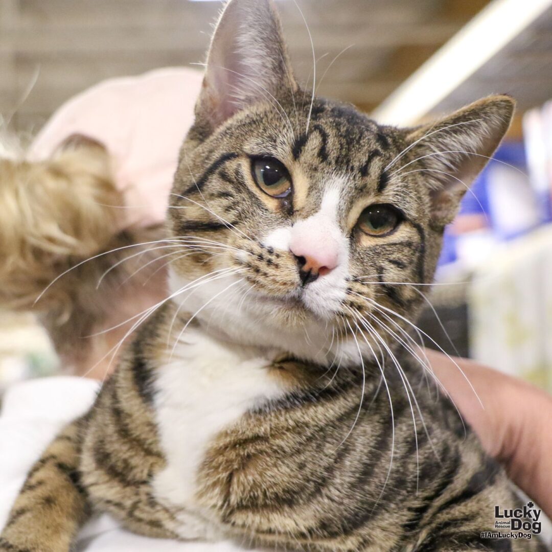 Please contact Brittny Parsells-Johnson (brittny.parsells-johnson@luckydoganimalrescue.org) for more information about this pet.Sweet Remi needs a forever home!REMI NEEDS A FOREVER HOME!!!! Want to see more photos and videos of Remi?! Check out his foster adventures on Instagram @luckydog3302! Name: Remi Best Guess for Breed: Domestic Short Hair Age: 7 months (Est. DOB: 4/11/24) SEX: Male Approximate Weight: 9.5 lbs Coloring: Brown Tabby Type of Hair: Short Gets Along With: With proper integration, Remi should get along with other cats, dogs, and kids. We’re happy to help with tips and tricks! Currently Living at: DC area foster home. I am Looking For: My forever home! Hi- I’m Remi – a gorgeous kitty. I won’t ask for much…just some love, cuddles and lots of toys so I can run and play and be my kitty self! What my Foster Says About Me: Remi is the world’s biggest cuddler! He’s adjusted really well and loves playing and cuddling! (12/19/24) Remi is a super playful kitten with a lot of kitten energy! He has spent time with a dog in his foster home and has done really well! (12/11/24) TO ADOPT: The adoption fee for adult cats is $200 ($350 for two cats adopted together). The adoption fee for a kitten (under 7 months old) is $220 ($380 for two kittens adopted together).If you are interested in adopting, please complete the Adoption Questionnaire online at bit.ly/adoptaluckycat. Lucky Dog Animal Rescue does our best to provide accurate information about the cats we have for adoption. That said, we cannot make any guarantees about age, breed or temperament. Thank you for contacting Lucky Dog Animal Rescue and helping to save a life! Please visit us online at www.luckydoganimalrescue.org . BE A FOSTER!!! Fosters make it possible for Lucky Dog Animal Rescue to save and care for homeless and abandoned dogs! To learn about fostering, please contact fostering@luckydoganimalrescue.org BE A SPONSOR!!!! Sponsors help Lucky Dog support the many dogs we save. To learn more about sponsorship, please contact info@luckydoganimalrescue.org !