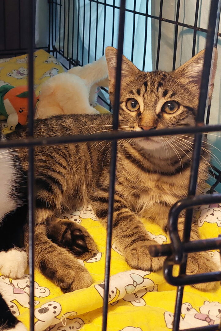 See Remy’s HomepageGo to our official websiteYou can fill out an adoption application online on our official website.Remy is a spirited gray and black tabby kitten with a heart full of curiosity and joy. He’s a whirlwind of fun, especially when he’s darting through the cat tunnel or chasing his own tail with impressive leaps and spins. Remy’s favorite pastime is tackling the balls in his three‑tier tower — he’ll try every angle until he gets it just right! He’s a social little guy who loves the company of other cats and eagerly seeks out playtime with his furry friends. When the excitement winds down, Remy is happy to curl up on your lap for a quick cuddle. But don’t be fooled — this busy boy has a daily playtime quota to meet, and he’ll make sure you know when it’s time for more fun. If you’re looking for a kitten who’s equal parts affectionate and adventurous, Remy is ready to bring endless joy (and a few giggles) into your home. . He would like to be adopted with his sister, Fergie or another young cat. Text Anita at 407 460 2305 to adopt.