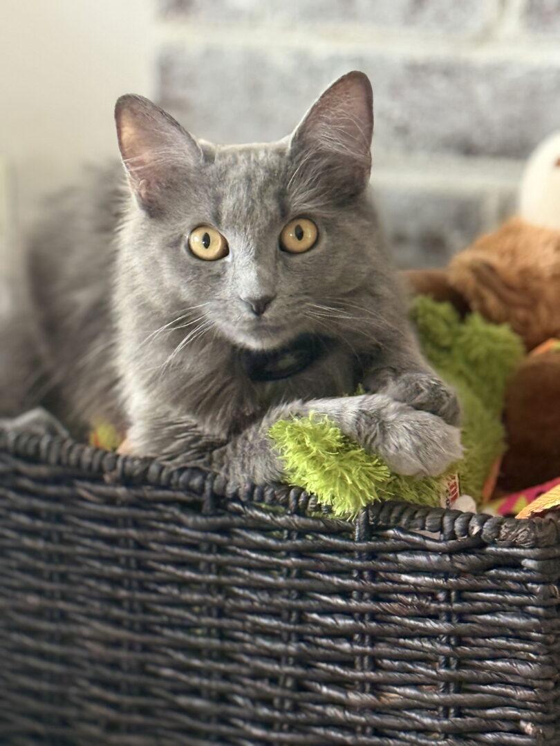 See Rennala’s HomepageGo to our official website An approved adoption application is required to meet me in my foster home — fill out an application today! Our mailing address is Reston, VA and our cats fostered in NoVA and DC homes. Washington, D.C.- Suburban Virginia/Maryland Area inquiries only, please! Meet Rennala! Rennala, whose name means “Queen of the Full Moon,” is a petite grey beauty with a personality as enchanting as her name. This sweet and playful girl loves chasing spring toys, leaping for feather wands, and wrestling with her fellow foster siblings. She’s equally happy enjoying some quiet time lounging in a hammock attached to a sunny window. Rennala will chat with you a bit and has a big purr to match. She gets along well with other cats and would thrive in a home with a playful feline companion. With her mix of independence, curiosity, and gentle affection, Rennala is ready to bring light, fun, and charm to the right family.