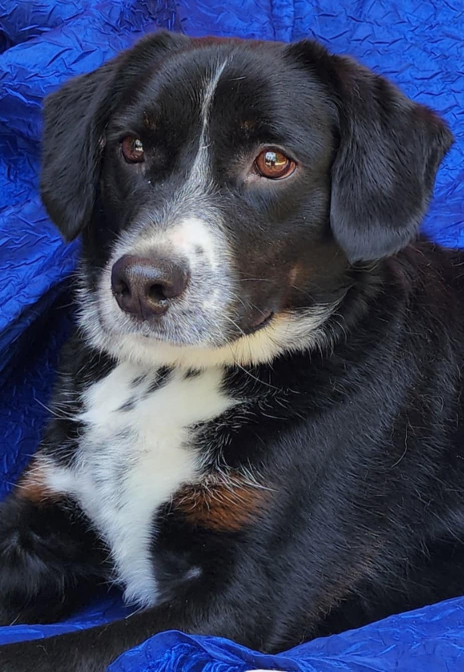 Rex was born around March 31, 2022 and weighs about 50 pounds. Rex is with us because his humans gained custody of a special needs child and it was decided that finding Rex a new home was in his (Rex’s) best interest. Rex is wonderful with cats and other dogs and is the sweetest boy ever. Rex is a teensy bit shy at first but within minutes he is a wiggly, adorable, goof, who wants to snuggle and play. Rex loves car rides and walks nicely on a leash with some pulling at first. Rex was purchased from a shady pet store which is now out of business. They sold Rex as a Collie Shepherd mix but we are struggling with that. We feel he’s more of a Beagle mix of some sort. He is gorgeous black and white along with rusty red markings that reminds of Bernice Mountain Dogs! He does have an odd growth on the inside of his right ear flap about the size of a dime. Their vet looked at it and told them not to worry about it. We are going to dab with some organic apple cider vinegar (with the mother) every day and see if it begins to shrink/heal. Rex is the kind of dog that will hang with you outside, off leash, while you do your chores or are playing with him – once he is adjusted and knows he lives there. Rex doesn’t mind baths and he is enjoying our pond. Rex is nicely house trained. Now for some complexing information about Rex – the family that raised him from a pup said that he was wonderful with the special needs child, but the child was causing him physical and mental discomfort. Rex did find a new home for a few months and was returned because he was uncomfortable (circle barked) around visiting children in the home. He adored the children in the home and a very sad little boy about 8 was dragged away from our car when he had to say good-bye to his dog buddy. When we pulled in Rex was off leash and out front, met us in the driveway and did also circle bark at us. So, at this time I guess we feel that he would be happiest, along with his forever humans, if it is a home without a lot of visitors/visiting children and one with a confident overtly friendly dog for him to romp and play with. Please help us find this home for the adorable Rex! The Adoption Fee for this dog is $500.00 Adoptions fees vary based on adoptability. In general our fees include spay/neuter, all age appropriate vaccines, Home Again micro-chipping & registration, worming & flea control – a ‘complete’ pet. We accept CASH or Visa/Mastercard ONLY. Joyful Rescues has no funding except for our adoption fees and miscellaneous donations. Pet care and vet bills are expensive – you must be ready to take on this financial (as well as emotional) responsibility. YOU MUST BE AT LEAST 25 YEARS OF AGE TO ADOPT A DOG FROM JOYFUL RESCUES We keep our pet list as up-to-date as possible. As soon as a pet is adopted, it is removed from the list. If a pet is still showing, it is still available for adoption. Can’t Adopt Me? SPONSOR ME Look for the Link ‘Special Instructions to Seller’ if you want to note a particular pet Before you seek to adopt a pet from Joyful Rescues, please read our Pet Adoption page http://www.joyfulrescues.org/pet_adoption.html. Online Application