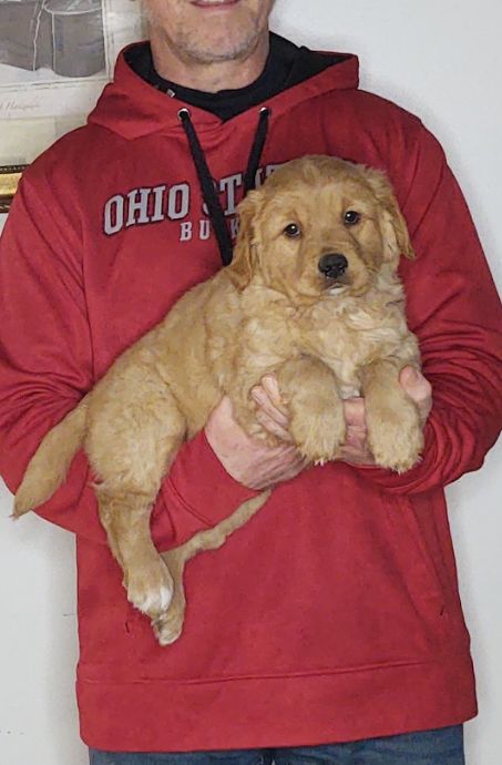 Hi, my name is Rex. I am a 9-week-old male Golden Retriever / Labrador Retriever MIX. My mom is a Golden Retriever and dad is a Lab MIX. I am up to date on my shots and ready to go home. We require that the new family has the dog spayed/neutered by one year of age unless their Vet suggests differently. To fill out an application, visit our website. On the puppy page your are interested in, tap the “I’m Interested" button or scroll down the page. Our adoption fee is $526. This is used to cover vet care, vaccinations, food, etc. We are a rescue group, not a shelter and we foster these animals at our home. Since we are a rescue, we can not guarantee the size or the breed of the dog. After approval, we will meet you at our Adoption Center. The address is 3616 Williams Lake Rd, New Philadelphia, Ohio 44663. Please Google this address first before you start the application process, to make sure you can make the drive to us. Remember we show by appointment ONLY.