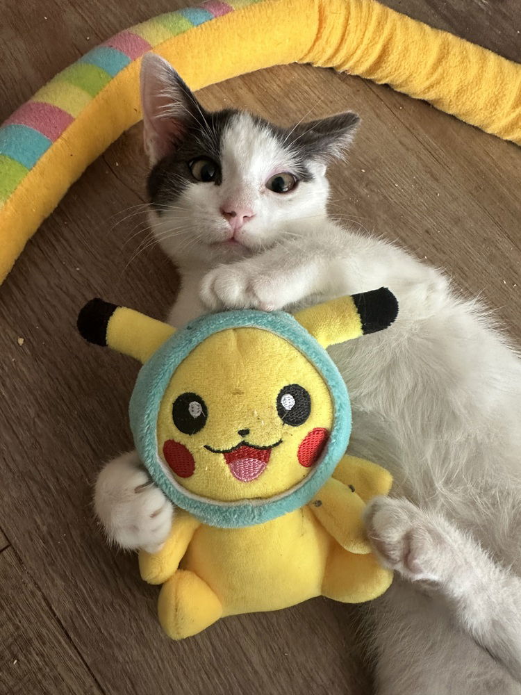 Let’s be real—Rigatoni is one weird cat! Sometimes he seems to forget he’s not a spicy street kitty, darting through the house and dodging his foster family like he’s got somewhere urgent to be. But the second he hears that treat jar rattle, he transforms, letting out his loud purrs and leaning in with affectionate slow blinks. In those moments, he’s all love and snuggles, reminding you that underneath it all, he’s a total sweetheart…and just a little forgetful! He’s looking for a family who gets that weird can be wonderful!