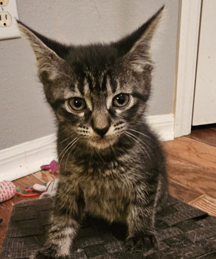 See Rimini 9.3.25’s HomepageGo to our official websiteYou can fill out an adoption application online on our official website.Because of the difficulty getting appointments to get our rescue cats altered in a timely manner, we recently launched our pre-spay/neuter adoption program. The cat you are interested in may be part of this program and will have at least it’s first FVRCP vaccine, a microchip registered to us and will have been treated for internal and external parasites. Please fill out our screening form and after reviewing and confirming your information, our adoption counselor will reach out to you to explain the process. I’m a stunning black and grey tabby girl with unique coloring that everyone says is pretty uncommon — and I definitely don’t mind the compliments! I’m an outgoing, playful kitten who loves toys, exploring, and being right in the middle of the fun. I’m also a social little sweetheart and would be happiest with a feline friend. I’ll need to be adopted with another playful kitten, or I can join a home that already has a friendly kitty who’s looking for a friend. If you’re hoping for a beautiful, lively kitten who brings joy and energy to your home, I’d love to be your girl!