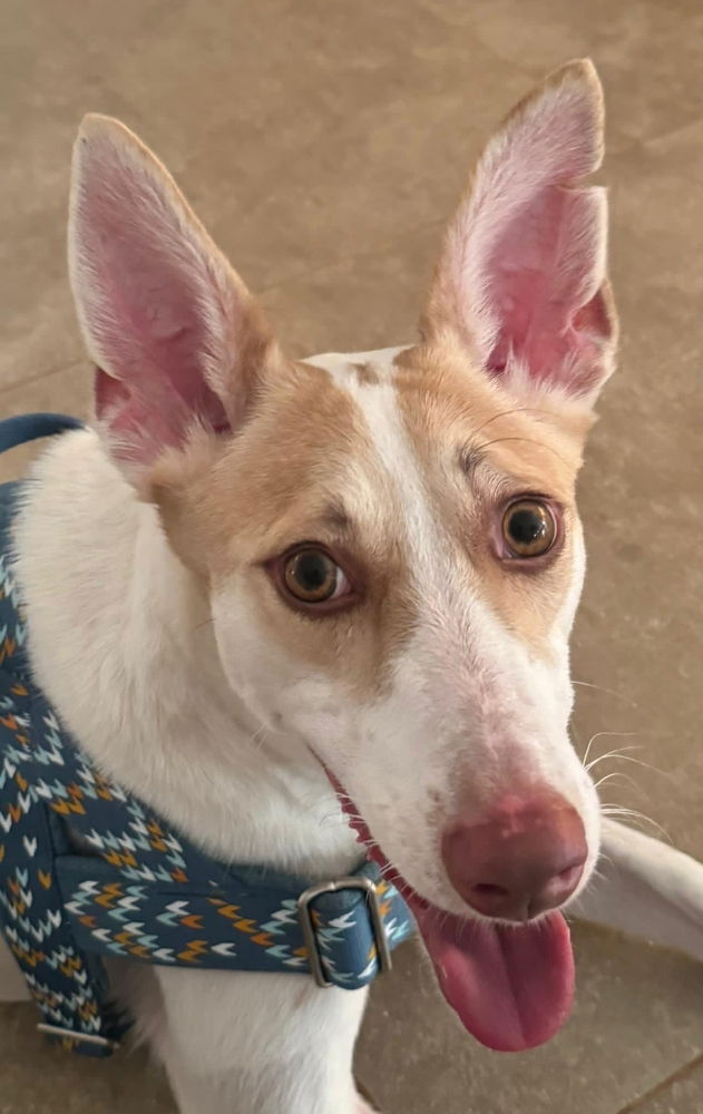 Hello. I'm RINALDO (Rio) and here is a little info about me:Breed: Ibizian Hound/Canaan Dog mix (Wadi dog)Age: 2 yrsGender: maleWeight: 33 lbsCountry of origin: OmanHighlights: loves affection, shy, easily trainable, sensitive, vigilant, curious, calmI am a good boy in the house and can be left on my own with no issues. Quite the gentleman actually. I ride exceptionally well in a car too.Rescued at the beginning of 2023 when I was about two months old, I was found alone on the streets in Oman with my two sisters struggling to survive. Our beautiful trio were taken in by a local rescuer who then noticed that my front legs were growing abnormally. A vet's visit confirmed that I needed surgery, ulnar osteotomy on each forelimb, which was done in August 2023 and I recovered well. Then, in May 2024, I started limping, so I had a second surgery on both legs to repair them again. Now, I'm in a different foster home where I am recovering very well. Here is a new vid show my progress and improvement this far: https://youtube.com/shorts/fypzHrGGREE.Though my nature is one of shy nervousness with strangers (I may nervous growl talk at first, but never any aggression), once I get to know and trust you, I am happy, happy, joy, joy for affection. You'll be amazed what a quick learner I am too.Despite startling easily (though improving), I am really a calm kinda guy. I just lack confidence yet is all, thus I am ever vigilant. With gentle reassurance, I feel safe and relax. Time will be the biggest factor for me to learn to feel secure.I am currently in a foster home with two female dogs who I adore. I would really benefit from a home with other dogs, as I really enjoy their company. My first foster home had cats and I ignored them, so they should be okay fur siblings too. I haven't experience with young children, but older dog savvy kids should be fine.If I had to say a best home for me, it would be with a family who is patient and kind, allowing me time to adjust. Ideally, with a doggie sibling(s.) Having a yard would be really spectacular and maybe in a more rural or quiet location.I am completing my healing presently and should be ready to wing my way to you soon. I am currently in a cast, but it doesn't slow me down any.The vet has stated the right leg correction greatly helped my elbow and posture and the same is hoped for my healing left leg. I do have a plate in each leg. He stated this has fixed things, but I should be evaluated again at a later date to see if anything further can/should be done, but at this point, I'm good. The surgery they did was called a radius and ulna valgus repair (osteotomy.)I am such a good boy, I really hope you see my lovely spirit within.Energy Level: moderateI get along with:Dogs: yesCats: unknown, but lived with them before, so highly likelyKids: unknownFears: none observed. Please be patient assisting me in my transition.Training:Leash skills: a little. Please be prepared to continue training.House trained: Yes. Please help me learn where to go in my new home.Health notes: currently in a cast until fully healedI have been spayed/neutered, vaccinated and microchipped.My adoption fee is $700.00 CAD plus applicable taxes. This includes my transportation to Canada, if I am able to be accompanied by a flight volunteer directly to Vancouver.Disclaimer: It is important for all applicants to visit our website, http://www.lovedatlastdogrescue.ca/adopting/ and read about Loved at Last Dog Rescue.Please Note: LALDR highly encourages adopters to research some local dog trainers before their dog arrives. Although a 1-on-1 trainer is often not needed, it is good to have someone in mind in case any problematic behaviours arise. Most bad behaviours can be modified if caught early enough, so make sure to nip undesirable behaviours in the bud before they become serious problems.Basic training should be taken seriously, but should not begin until your dog is well settled in – at least a couple of weeks. After you feel your new dog is relaxed and comfortable in their new home, check out training courses in your local area. Even basic beginner courses like those taught at a local pet store can have a huge benefit in helping your dog learn to socialize and get used to being in public situations, all with the added benefit of strengthening their bond with you.Normally, we will not approve adoptions to homes with children under 12 years of age. However if a dog has been determined to be good with children we will approve applicants with children 8 years or older. More information can be found on our website.The age and breed of a dog is usually an educated guess, so we are not able to guarantee the accuracy of age or breed of our dogs.Information included in the profile is provided to us from the international rescuer or local fosters. LALDR does not have access to overseas dogs and cannot always verify the accuracy of their descriptions. Every dog is an individual and can act differently in different situations based on the person adopting them and the environment in which they live.While most dogs find escorting passengers flying directly to Vancouver, some will find flights through Toronto or Montreal. In that case, additional fees will apply to fly your dog to Vancouver by cargo. Unaccompanied cargo costs within Canada range from $350 – $550 depending on the size of the dog. LALDR will be as transparent as possible with you regarding these costs.[MID-EAST] *Vaccinations: Dogs from the Middle East are vaccinated for rabies, parvo, distemper, leptospirosis, adenovirus type 1 and para-influenza. Bordetella is not given, as that has not been a problem in the Middle East.[TURKEY] Dogs from Turkey receive a 4D SNAP test to include Heartworm, Ehrlichiosis, Leishmania and Anaplasmosis.
