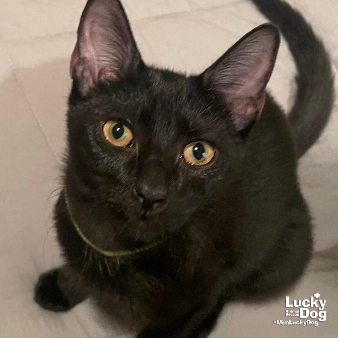 Please contact Mollie Gorney (mollieg@luckydoganimalrescue.org) for more information about this pet.Cute Kitten In Search of A Forever Home!RIPTIDE NEEDS A FOREVER HOME! Name: Riptide Best Guess for Breed: Domestic Short Hair Age: 5 months as of 10/17/25 DOB: 5/17/25 SEX: Female Approximate Weight: 2 lbs 8 oz as of 8/17/25 Coloring: Black Type of Hair: Short Gets Along With: Because of her young age, Riptide will likely get along with other cats, dogs and kids with an acclimation period. We’re happy to help with tips and tricks! Currently Living at: DC area foster home Litter: Renegade, Roxanne, Riptide, Rapture (also lives with Willy) I am Looking For: My loving forever family! Hi! I’m Riptide, and I am a cute little kitten! I won’t ask for much- just some love, cuddles and lots of toys so I can run and play and be my kitten self. Two kittens are better than one – consider adopting one of my super cute siblings, too! What my Foster Says About Me: Riptide is total love bug and sometimes gives an adorable little meow when demanding affection. She’s a little purr machine at nap time, and likes to cuddle! She also loves to play and would love to be adopted with one of her siblings (Rapture, Renegade, or Roxanne) or another kitten around the same age — she’s adapted quickly when meeting a new cat. She’s very gentle and should get along fine with younger kids. She’s been perfect at using the litter box! Kitten Vetting Requirements: Your kitten may not be fully vaccinated upon adoption. You will be responsible for providing whatever remaining vaccines are needed to complete the kitten vaccine series. TO ADOPT: The adoption fee for adult cats is $200 ($350 for two cats adopted together). The adoption fee for a kitten (under 7 months old) is $220 ($380 for two kittens adopted together).If you are interested in adopting, please complete the Adoption Questionnaire online at bit.ly/adoptaluckycat. Lucky Dog Animal Rescue does our best to provide accurate information about the cats we have for adoption. That said, we cannot make any guarantees about age, breed or temperament. Thank you for contacting Lucky Dog Animal Rescue and helping to save a life! Please visit us online at www.luckydoganimalrescue.org . BE A FOSTER!!! Fosters make it possible for Lucky Dog Animal Rescue to save and care for homeless and abandoned dogs! To learn about fostering, please contact fostering@luckydoganimalrescue.org BE A SPONSOR!!!! Sponsors help Lucky Dog support the many dogs we save. To learn more about sponsorship, please contact info@luckydoganimalrescue.org !