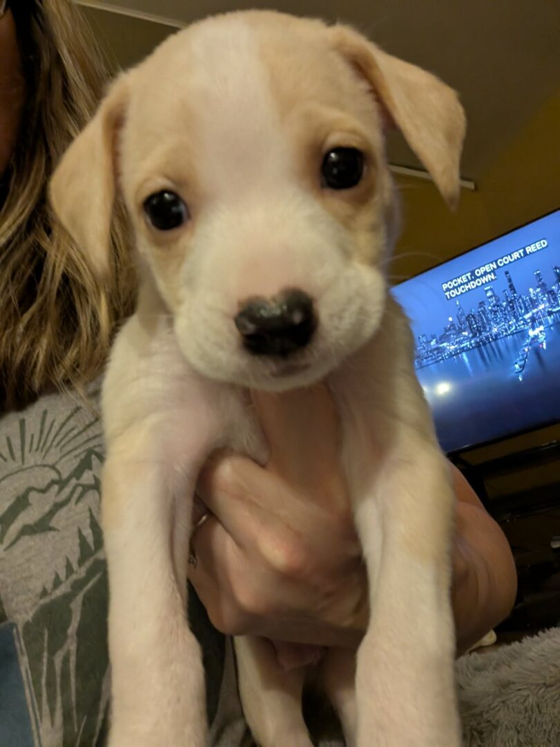 See Rizzo’s HomepageGo to our official website Rizzo is a charming lab/hound mix puppy born on November 27, one of 13 pups born to Mama Sandy and raised entirely in rescue. Thanks to a nurturing foster environment, Rizzo has grown into a confident, social, and affectionate little girl. Rizzo loves people and enjoys interaction, learning, and playtime. She’s a smart puppy with a gentle confidence and an eager-to-please attitude that will serve her well as she continues to grow. With consistent, positive training, Rizzo will make a wonderful family companion. Because she is still a young puppy with typical nippy behavior, Rizzo would do best in a home with kids ages 6 and older. We may consider families with younger children if there is an existing playful dog in the home who can help meet her social and play needs. Rizzo is looking for a family ready to enjoy the journey of raising a puppy and all the joy that comes with it. If you are interested in adopting/meeting this pup , please complete our online adoption application that you can find here: https://www.starfishanimalrescue.com/adopt/dog-adoption-application . Your application will be reviewed by our team and if it is a good fit, we will send to the foster family to set up a meet! The adoption fee of $550 will include spay/neuter, microchip, age appropriate/required vaccinations, treatment for heartworm and any other necessary medical treatment to assure a healthy new pup for your family. IMPORTANT DISCLAIMER: Although we do our best to describe breed, since our pups all come from shelters we can not and will not make any guarantee on breed or size. We can tell you that they are 100% RESCUED! And that is the BEST breed! *please note that we are a foster home based rescue and we do home visits as part of the adoption process – we are unable to adopt to families who live outside of the Chicago and surrounding suburbs. Thank you for your understanding.