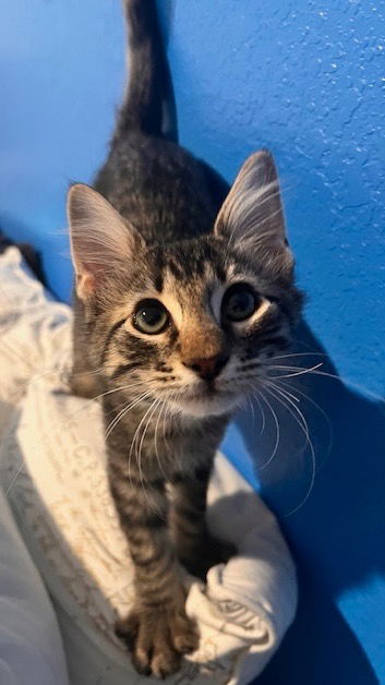 Meet Rocket – The Fastest Paws in the Galaxy! Hold onto your heart—Rocket is about to launch straight into it! This fluffy grey tabby ball of energy with silvery stripes, bright eyes, and a purr that could power a spaceship.Rocket’s mission includes: Zooming through the house at warp speed Investigating every nook like a true space explorer Docking in your lap for snuggles after a long day of adventureHe’s litterbox trained, healthy, and ready to blast off into his forever home. Whether he’s chasing comets (aka toy mice) or curling up in a cozy capsule (aka your hoodie), Rocket is the perfect co-pilot for life’s journey.Adopt Rocket and let the countdown to cuddles begin!To inquire about adopting this cat please complete an adoption application at tinyurl.com/ccapadoptions Once you submit an adoption application, a foster will reach out within 48 hours to schedule a meet-and-greet or ask any additional questions. If you haven’t heard back within that time, please contact **adoptions@sanantonioferalcats.org** so we can follow up. If the cat you’re interested in isn’t listed in the dropdown menu, it may be pending adoption or recently adopted, but the website hasn’t been updated yet. Feel free to email us for confirmation. Thank you for choosing to adopt one of our amazing cats!