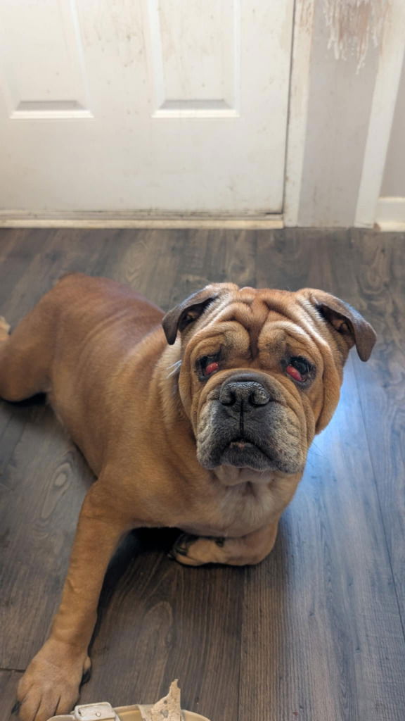 ***NOT ACCEPTING APPLICATIONS***NOT READY FOR ADOPTION***MUST BE ON BULLDOG WAITLIST***Hi! I’m Rocky, though the humans I’m staying with often call me big guy. I’ve just come into foster care a couple of weeks ago and am just getting used to humans that care about me again. I’ve been letting them know who I am little by little. I really like my crate. Foster Mom calls it ‘crate trained’ but I call it home. I spend a lot of time in there even when the door is open. I like to watch what’s going on. But, when I hear the word ‘walk’ I come running out and go straight to the door. If you wait too long I start to make what Foster mom calls ewok noises. I love to walk! My foster sister-pup is pretty ok. We walk together and sometimes she tries to play, I have not joined yet but maybe one day. I enjoy big humans and little humans equally. Did I mention I am particularly fond of belly rubs? I do most of my washroom breaks outside but occasionally have an accident. I think I’m just getting used to this new place. I have some eye, ear and skin infections to get cleared up, and will be going for my neuter and double cherry eye surgery soon. I look forward to the life ahead of me!