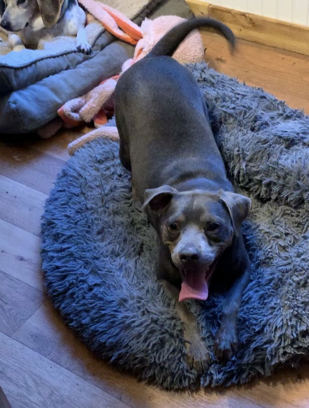 Pug mixRolo is a funny little girl with the silliest “talking” ability. She is crate trained and doing very well with house training. She gets along well with dogs and children…we just don’t know about cats. Please send us your phone number to hear more about Rolo!