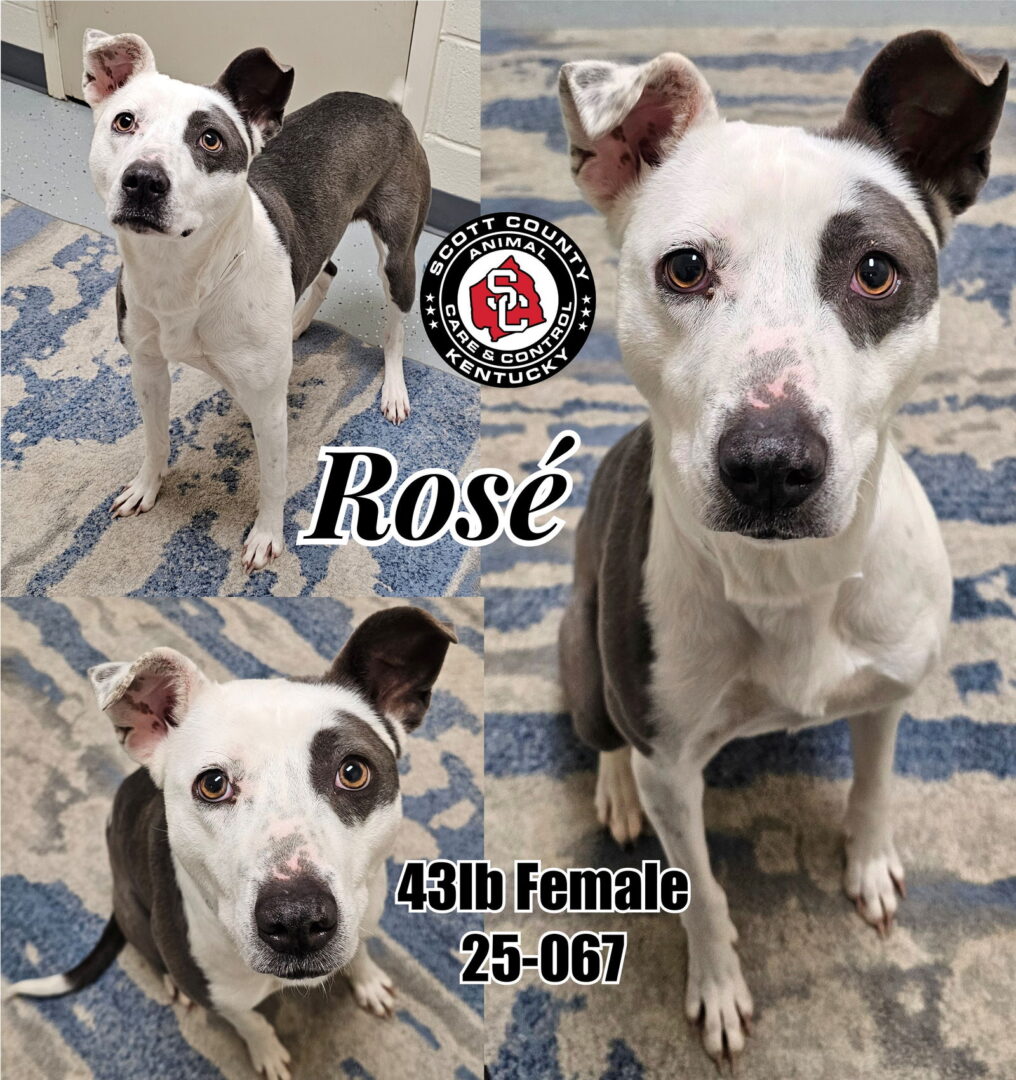 See Rosé’s HomepageGo to our official websiteYou can fill out an adoption application online on our official website.Rosé is a Pit/Border Collie(?) mix. This almost-2-year-old is super smart and eager to please! Will do anything for a treat (which she takes gently!) She can get quite excited (especially when it comes to full body rubs and pets!) and has a lot of energy, but can come back ‘down to earth’ well. She’s got Sit down pat, and quickly caught on to Come and Lay Down! She loves to play and thinks squeaking toys are quite interesting! She also gets along with most dogs, kids, and did we mention she’s housebroken?