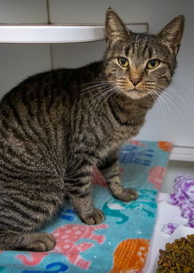 Roxy is a pretty, brown tabby. She had been spayed before she entered our doors. Unfortunately, we did not detect a microchip. Roxy would love to be in a home environment. Please submit our no-obligation Adoption Application to meet and greet or to adopt: https://forgottencats.org/adoption-application/. Not ready to adopt? Please consider fostering: https://forgottencats.org/foster-a-cat/. Thank you! (Foster: Trainer)