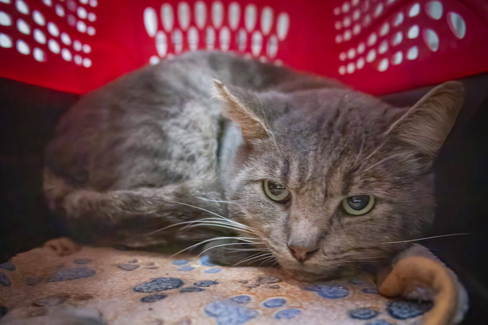 Rufus and some of his colony mates are very scared. We hope that they begin to realize that they are safe now. It will need to be determined if they can be new family members, or if they need to go to a barn. For now, Rufus is slated to go to a barn. Please submit our no-obligation Adoption Application to meet and greet or to adopt: https://forgottencats.org/adoption-application/. Not ready to adopt? Please consider fostering: https://forgottencats.org/foster-a-cat/. Thank you! (Foster: Trainer)